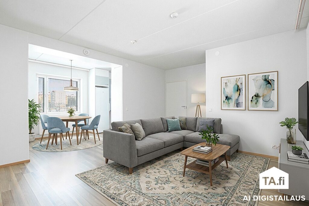 This top-floor corner apartment in a through building offers a functional and comfortable whole for everyday life. The heart of the home is the spacious living room and dining area, which form a bright and easy-to-decorate living space.