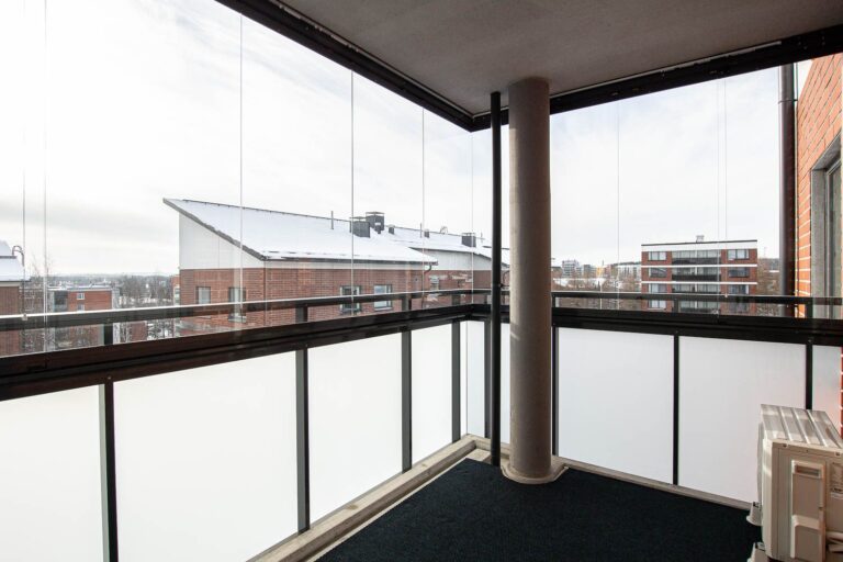 The compact kitchen corner has plenty of cabinet and counter space, and separate full-height refrigerator and freezer bring practicality to everyday life. The glazed balcony facing south serves as a nice additional space and offers a cozy place to enjoy summer evenings. Living comfort is enhanced by two separate toilets, a private sauna and an air-source heat pump that provides cooling in the summer heat.
