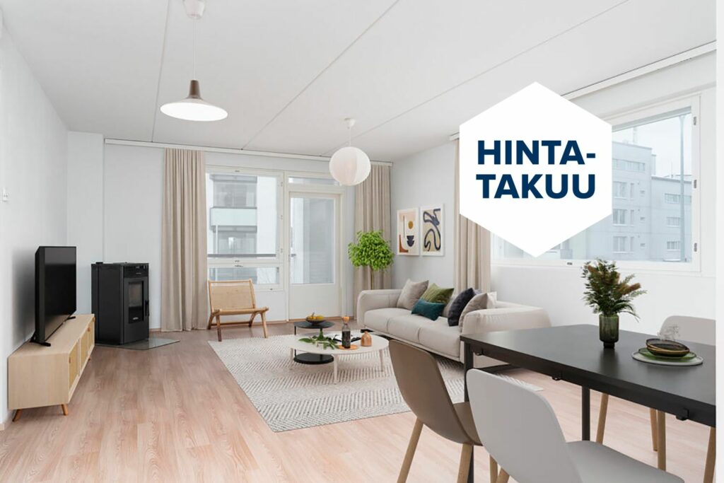 A second-floor triangle in a modern housing association available immediately! This is why the apartment has a pellet fireplace in the living room as a perfect atmosphere creator. The living room is spacious and leads to the apartment’s balcony. There is room to cook in the windowed kitchen next to the living room. The standard equipment in the kitchen is an induction stove, ice-freezer and space reservations for a dishwasher and a microwave.