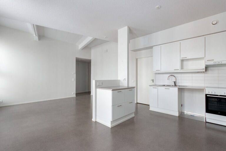 Turo House is located in the Niirala district of Kuopio on a sloping plot, which creates three residential floors along Niiralankatu and four residential floors on Pyöräkatu, including the ground floor. The building has 68 residential apartments, the sizes of which vary from 31.5 m2 studios to 96.5 m2. The floor plans of the apartments are individual. Some of the apartments have their own sauna and some do not. The laundry room is tiled and the comfort floor heating is electric. Residents of apartments without a sauna can also enjoy the sauna if they wish by booking a sauna session in the housing company’s sauna.