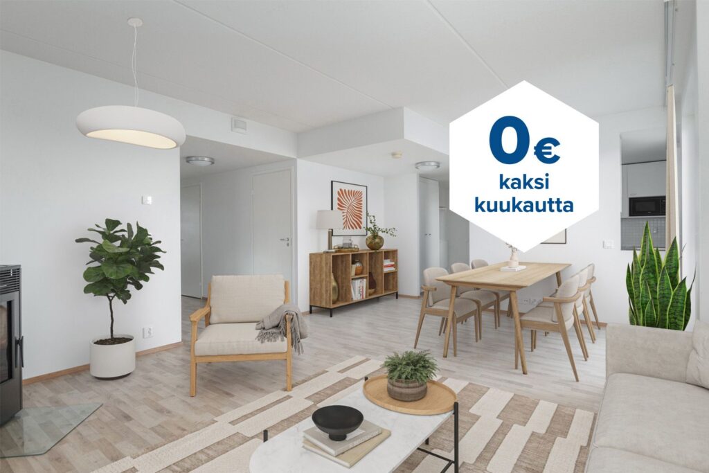 Make a contract now – you will receive the first two months of usage fee for €0 and a security deposit of €250. The benefits are valid until April 15, 2026 and only apply to vacant apartments and new customers. Water and parking space fees as usual. Requires 12 months of residence.