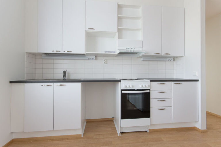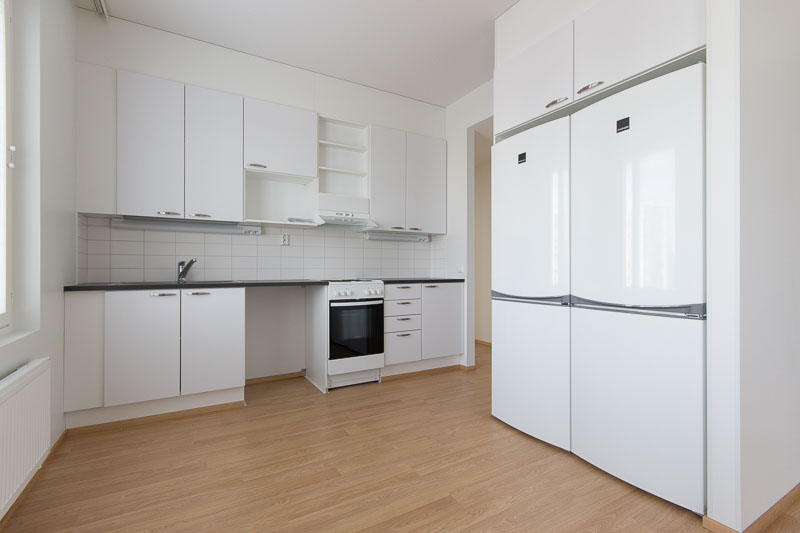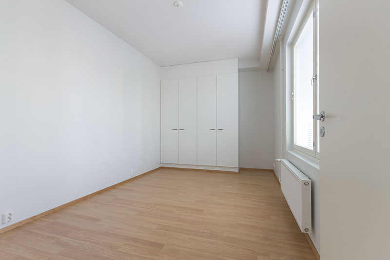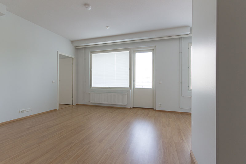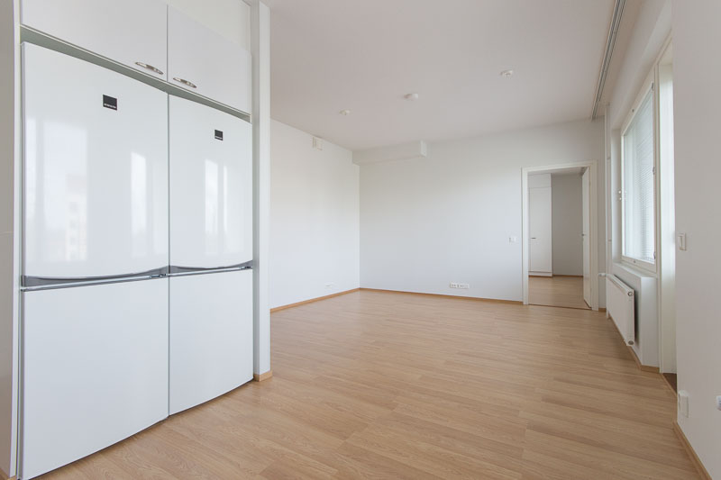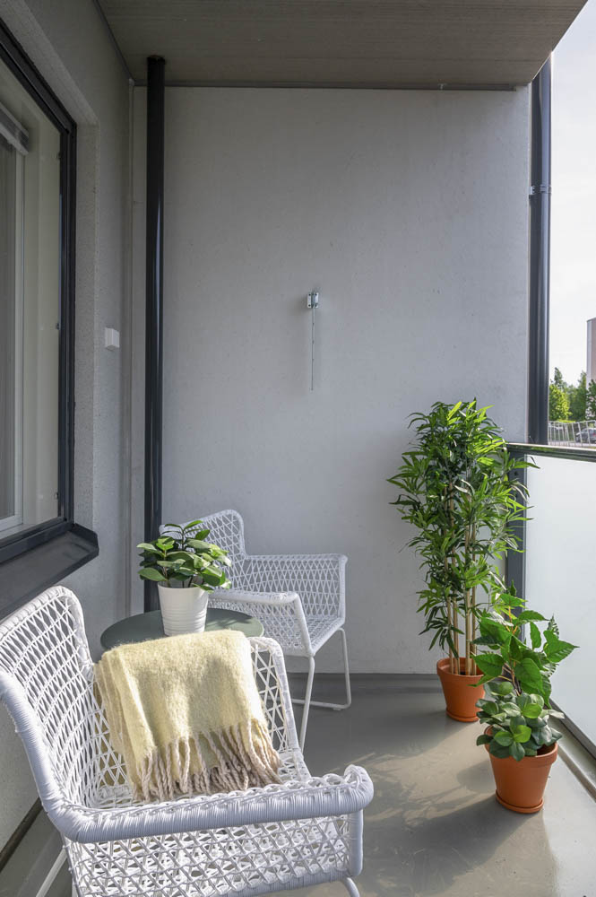 The floor plan of the apartment is functional and the surface materials are restrained: the floors are oak laminate, the walls are painted white and the bathroom is tiled. The heart of the home is the kitchen, which naturally opens into the living room, and smart storage solutions bring functionality to the space. A private balcony and sauna also add to the living comfort!