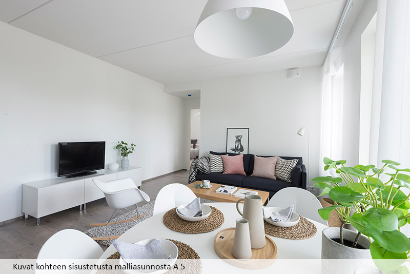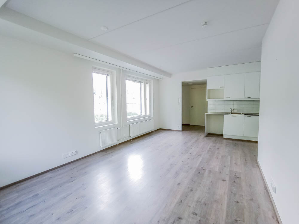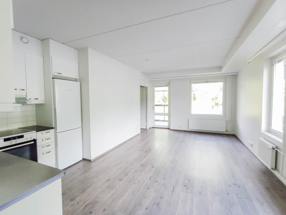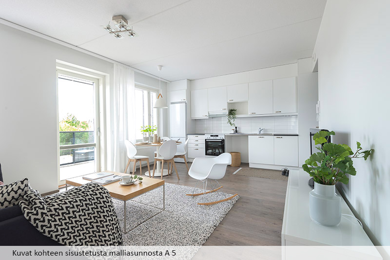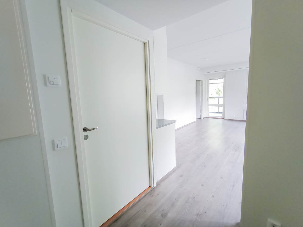 A two-room apartment on the second floor. The surfaces of the apartment are timelessly stylish and light, which allows for many different ways of decorating. The windows open to two directions and the comfort of living is enhanced by a private sauna and a spacious balcony.