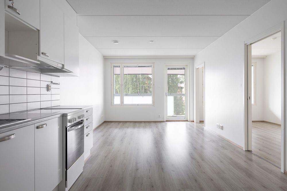 A spacious fourth-floor two-room apartment with an excellent floor plan. The large walk-in closet has plenty of storage space and the glass-enclosed balcony that runs the entire width of the apartment allows you to spend time outdoors. The bedroom has a space-saving sliding door solution. The floors of the apartment are laminate, and the bathroom has tiled walls and floors. Venetian blinds on the windows increase living comfort. The kitchen has a ceramic hob, fridge freezer and space for a dishwasher and microwave. The bathroom has plenty of storage space: a mirror cabinet, sink cabinet and laundry cabinet. There are also space reservations for a washing machine and dryer. If you wish, you can book a sauna session in the house sauna on the attic floor, which also has a cooling terrace. NOTE! This right-of-occupancy apartment has the possibility of being rented out when there are no right-of-occupancy applicants. If you rent this right-of-occupancy apartment, the lease agreement can be made for a fixed term for a maximum of two years. Rent 810 euros/month and security deposit 1620 euros. Despite the fixed term, the tenant has the right to terminate the lease agreement with one month’s notice. If there is no demand for the apartment as a right-of-occupancy apartment at the end of the two-year fixed-term lease agreement, the lease agreement can be extended.
