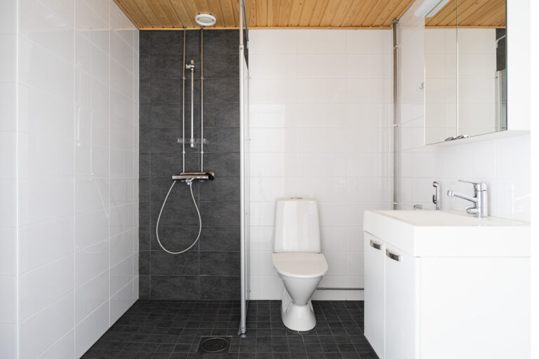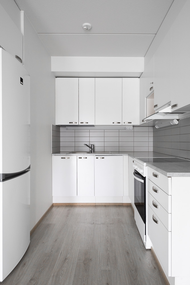 Stylish and neutral surface materials create the basis for a wide range of interior designs. The living rooms have easy-care laminate floors and the bathrooms have tiled walls and floors. The bathrooms have plenty of storage space: they are equipped with a mirror cabinet, a sink cabinet and a laundry cabinet. In addition, the bathrooms have space for a washing machine and a dryer. The three- and four-room apartments have their own saunas, where you can take a sauna whenever it suits you. The kitchens are equipped with a ceramic hob and space for a dishwasher and microwave. Balconies and blinds increase the comfort of living.