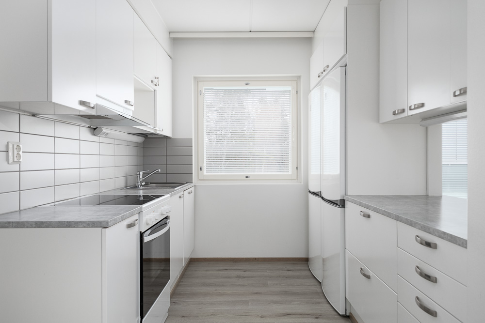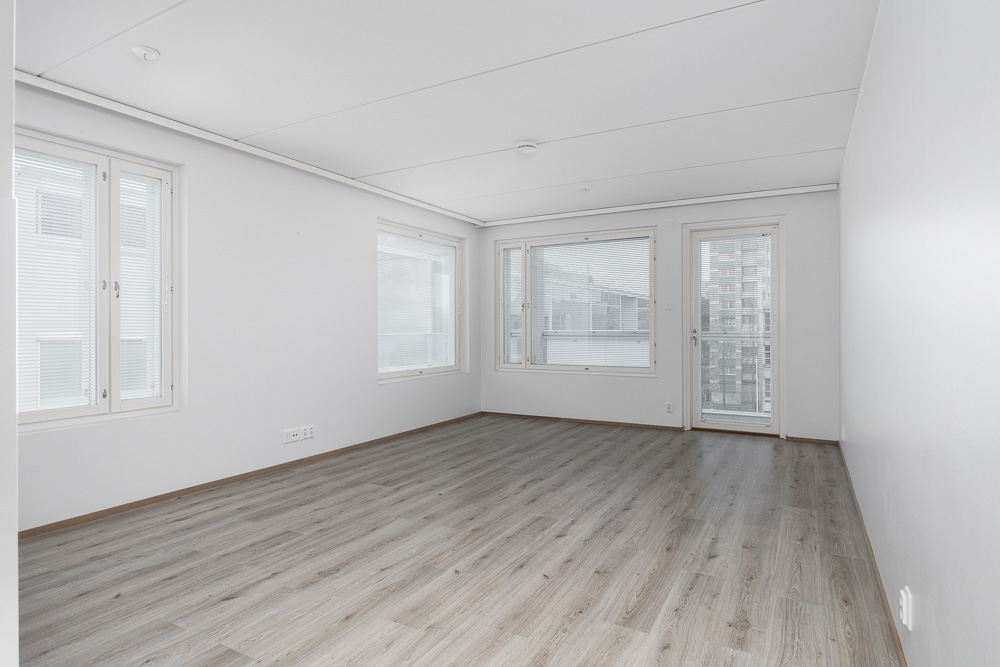 Available fifth floor gable end of a through building in a quiet housing estate in the well-kept Länsimäki area with good transport connections. The kitchen of the apartment has plenty of cupboard and counter space, and it is connected through a serving window to the bright living room, from which there is access to your own stylishly glazed balcony where you can admire the morning sun in the peace of the top floor. The bedrooms are located on different sides of the apartment in your own peace. You can enjoy the warmth of the spacious bathroom’s own sauna whenever you want. The rent includes 50 Mbit/s internet connection.