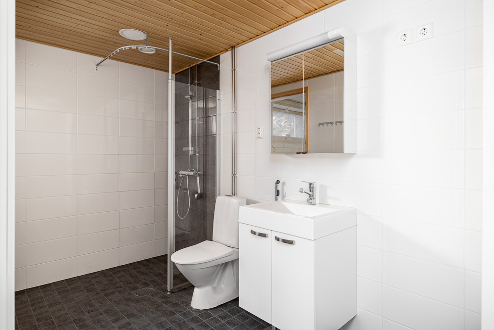 Stylish and neutral surface materials create the basis for a wide range of interior designs. The living rooms have easy-care laminate floors and the bathrooms have tiled walls and floors. The bathrooms have plenty of storage space: they are equipped with a mirror cabinet, a sink cabinet and a laundry cabinet. In addition, the bathrooms have space for a washing machine and a dryer. The three- and four-room apartments have their own saunas, where you can take a sauna whenever it suits you. The kitchens are equipped with a ceramic hob and space for a dishwasher and microwave. Balconies and blinds increase the comfort of living.