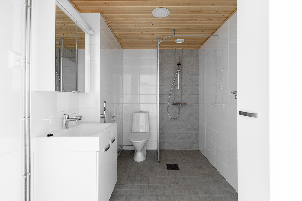 Stylish and neutral surface materials create the basis for a wide range of interior designs. The living rooms have easy-care laminate floors and the bathrooms have tiled walls and floors. The bathrooms have plenty of storage space: they are equipped with a mirror cabinet, a sink cabinet and a laundry cabinet. In addition, the bathrooms have space for a washing machine and a dryer. The three- and four-room apartments have their own saunas, where you can take a sauna whenever it suits you. The kitchens are equipped with a ceramic hob and space for a dishwasher and microwave. Balconies and blinds increase the comfort of living.