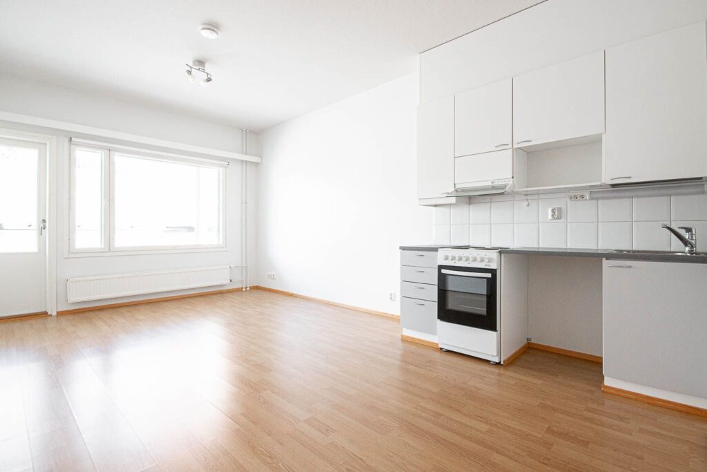 A cozy small two-room apartment on the third floor is available on Suolatie. The apartment has laminate flooring. The living room and kitchen are one space. The living room has access to its own spacious, glazed balcony. In addition to wardrobes, there is a separate wardrobe in the hallway. In addition to toilet facilities, the laundry room has a shower, space for a washing machine, and a laundry cupboard. You can book your own sauna session in the house sauna. The apartment is offered based on applications. Submit an electronic rental apartment application on our website www.ta.fi/vuokrahakemus .