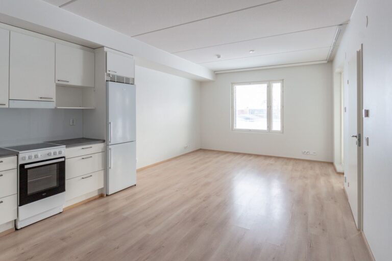 A spacious two-room apartment with a glazed balcony. The bedroom has plenty of cupboard space and space for a wide double bed. The kitchen and living room are one space, so even a larger group can fit around the table or enjoy a movie night. Note; the pictures are from a similar apartment, there may be slight differences in the shades of the surface materials.