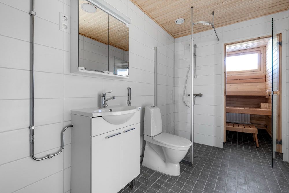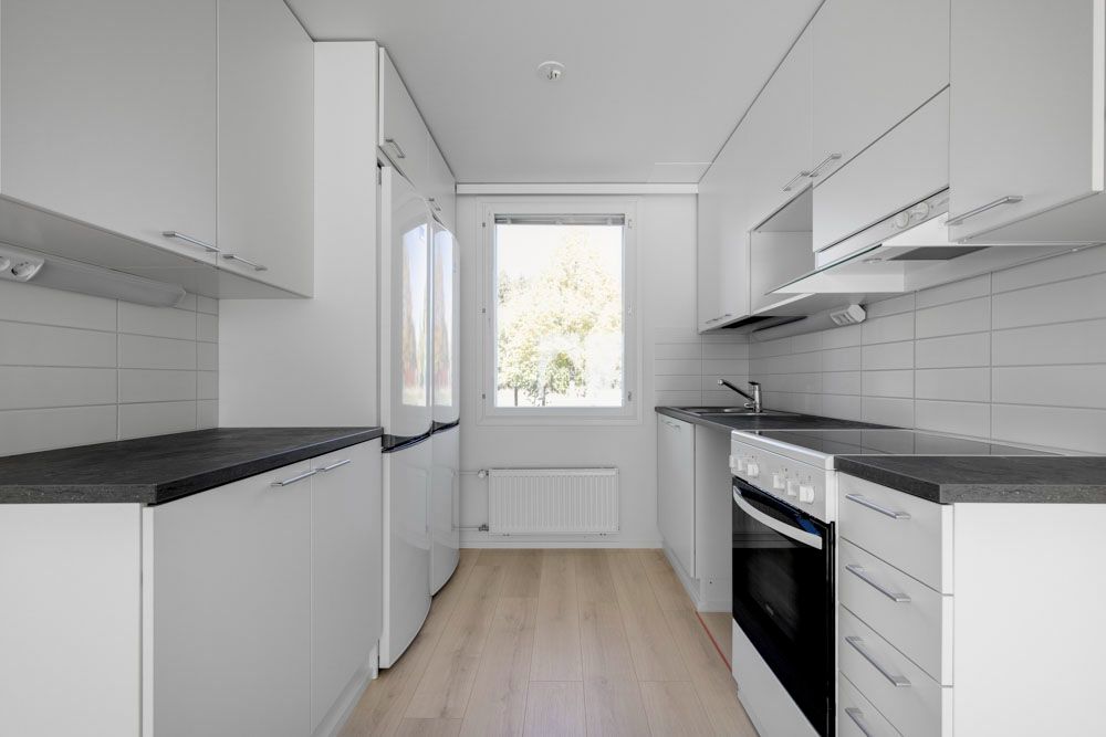 In the apartments, stylish laminate floors and washrooms are tiled with modern tile selections. The kitchens have a ceramic stove as standard, and the larger apartments have two ice-freezer cabinets. The washrooms have both mirror and basin cabinets. All apartments have their own sauna. Blinds are installed on the windows. Apartments in the apartment building have a balcony. The terraced apartments have their own yards and the two-level terraced apartments also have a French balcony on the upper floor. Parking spaces can be reserved for residents.
