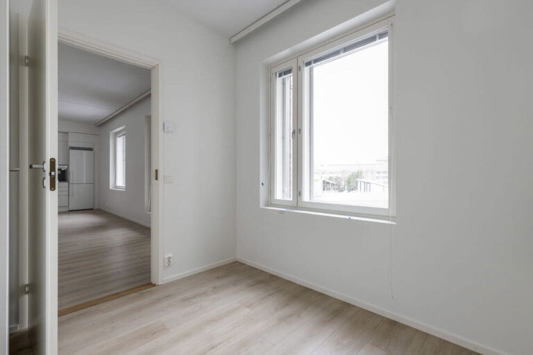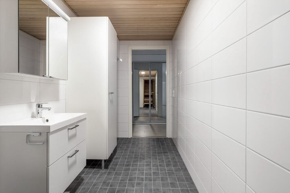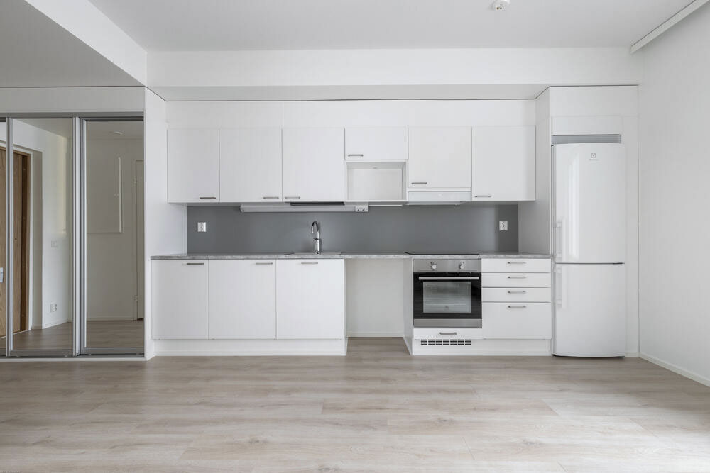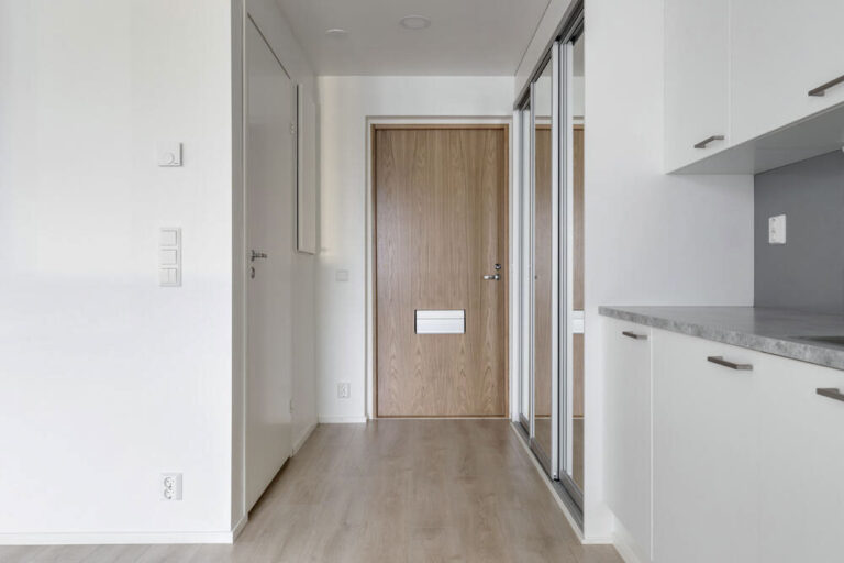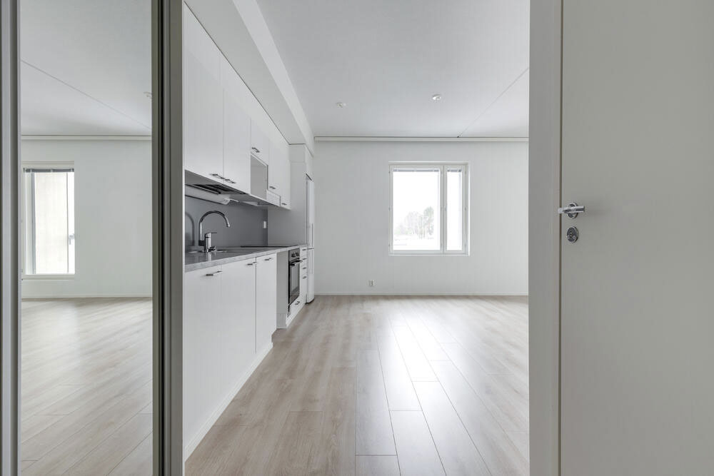 This stylish right-of-occupancy property uses modern, high-quality and timeless materials. The floors are laminate and the walls are painted. The hallway cabinets have mirrored sliding doors. The kitchen has a built-in oven and ceramic hob. The washrooms have tiled walls and floors, and the three-room apartments also have their own saunas. Glazed balconies in all apartments increase living comfort.