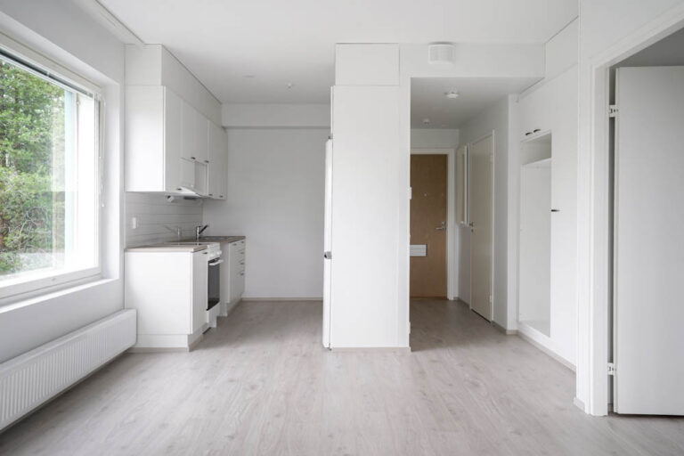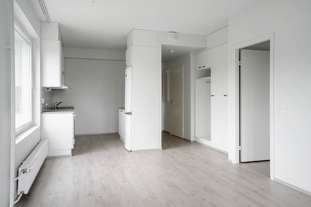 A bright and spacious two-room apartment is available. The kitchen and living room are a spacious, unified space. You can enjoy the steam of your own sauna whenever it suits you. Balcony facing east. The apartment is located on the fourth floor. In this location, parking spaces are primarily reserved for larger apartments. If spaces are available, smaller apartments also have the option to reserve a space with a waiver condition, in which case you may have to give up the space with 14 days’ notice.