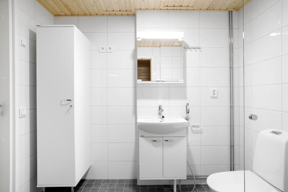The apartment building has an elevator. Each apartment has its own balcony and some of the apartments have a sauna and a cloakroom. The largest family apartments have two toilets to help with everyday life. The building has good common facilities. The residents of the building have a drying room, a stroller storage room and a bicycle storage room. Each apartment has its own heated storage room for personal belongings. There is a sheltered play and recreation area in the courtyard, which is shared with the neighboring company. The company has 24 heated parking spaces, one of which is for disabled people.