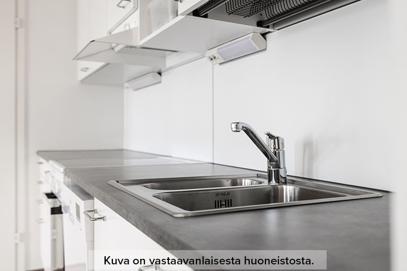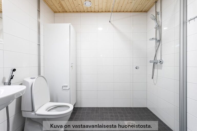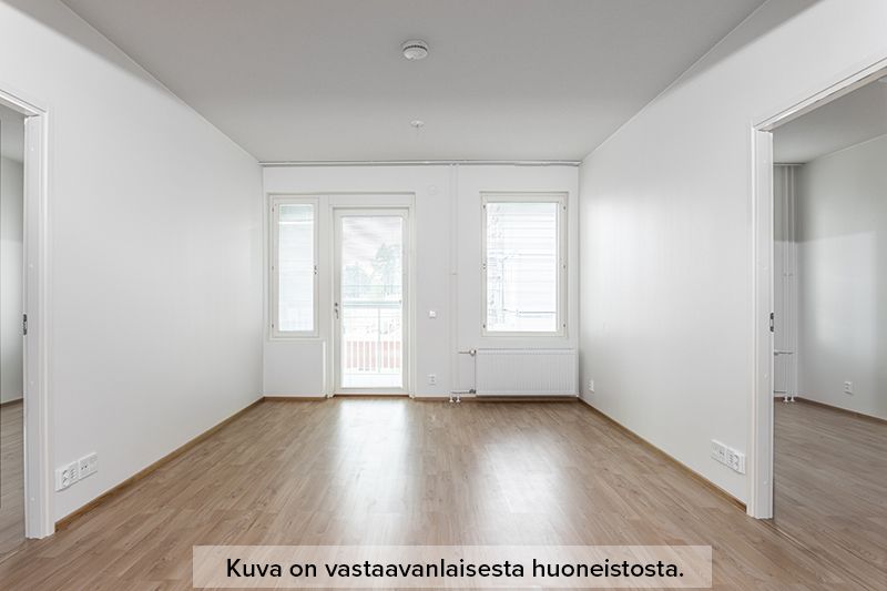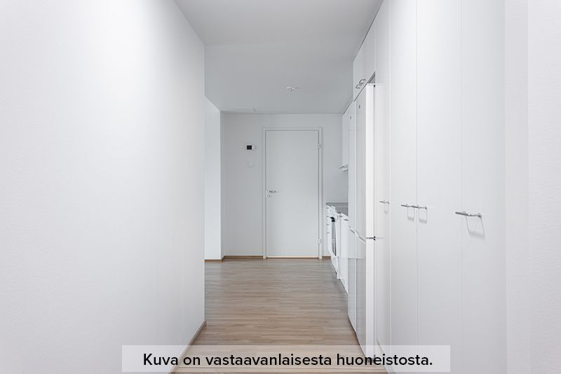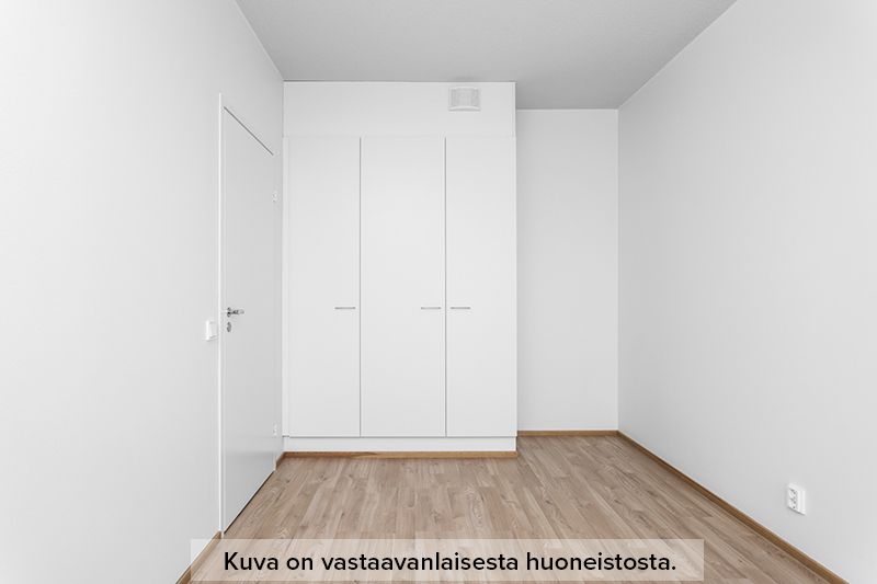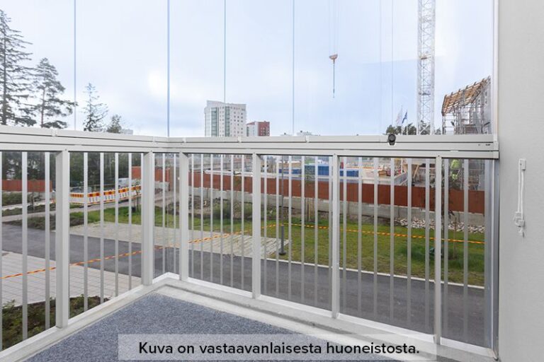 A spacious triangle with a functional floor plan. The apartment is entered through a hallway, which is connected to a storage space. The apartment’s functional open kitchen opens into the living room. The kitchen has two fridge-freezers, a white 60 cm wide dishwasher, a 60 cm wide space for a microwave oven and a ceramic floor-standing stove. The bathroom has a laundry closet, space for a 60 cm wide washing machine and dryer, and washing machine connections and sockets are ready. The cozy glazed balcony is accessed through the living room. There are also two bedrooms around the living room, both of which have storage space ready.