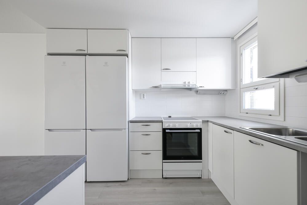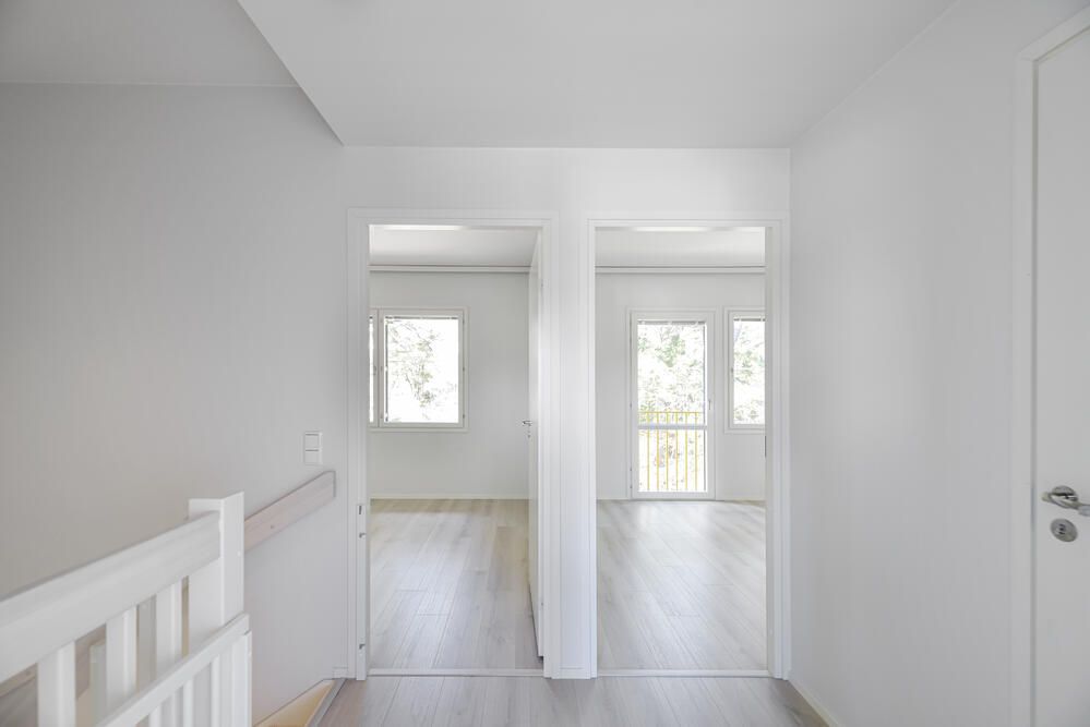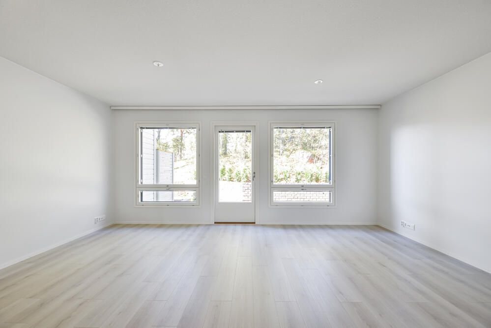 The apartments have light-colored laminate floors and painted walls. The laundry rooms are tiled with modern tile options. The kitchens have a ceramic stove and a fridge-freezer as standard. The laundry rooms have mirror and sink cabinets. Residents can reserve shelters and power points in the yard. Children have their own play area in the yard. There are their own cold storage facilities in front of the apartments. DNA’s basic broadband speed of 50 Mbit/s is included in the price.