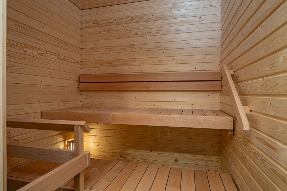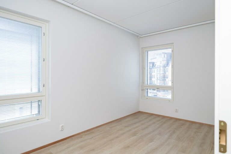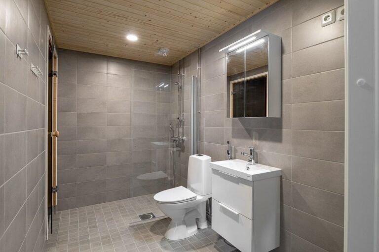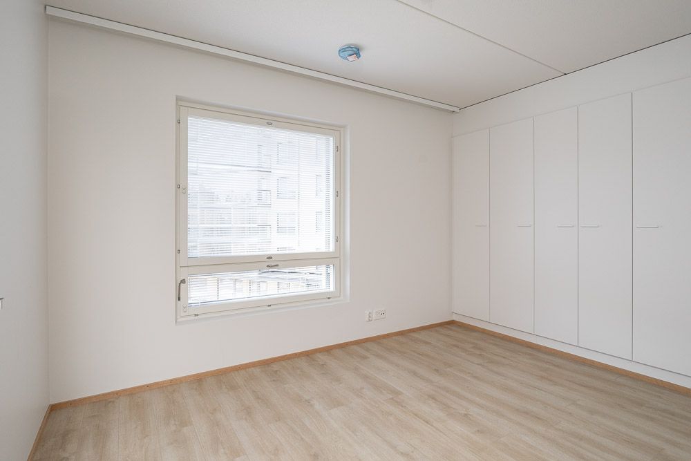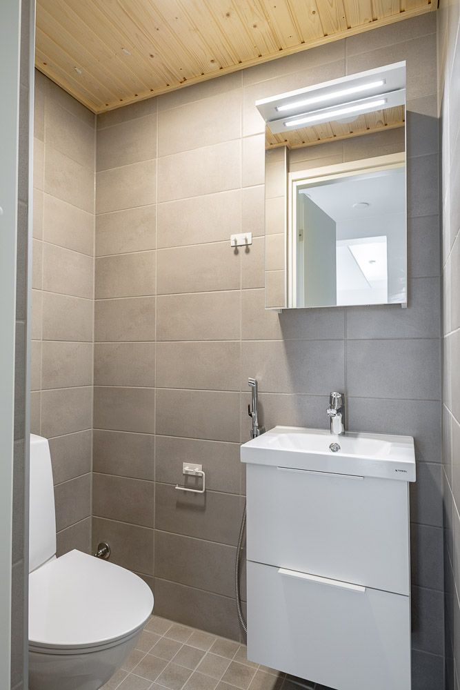The apartment has a separate toilet in addition to the bathroom. The bathroom has its own sauna and space for a washing machine and a washing tower. The floors in the living areas are laminate, and the bathroom and separate toilet are tiled.