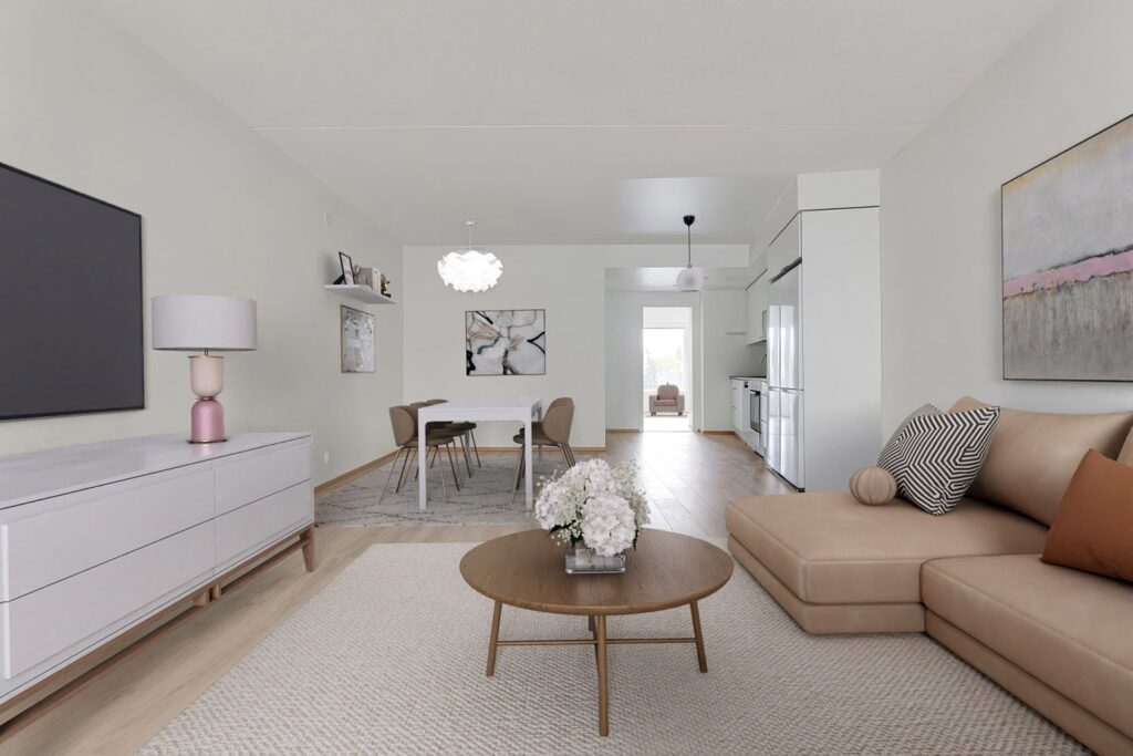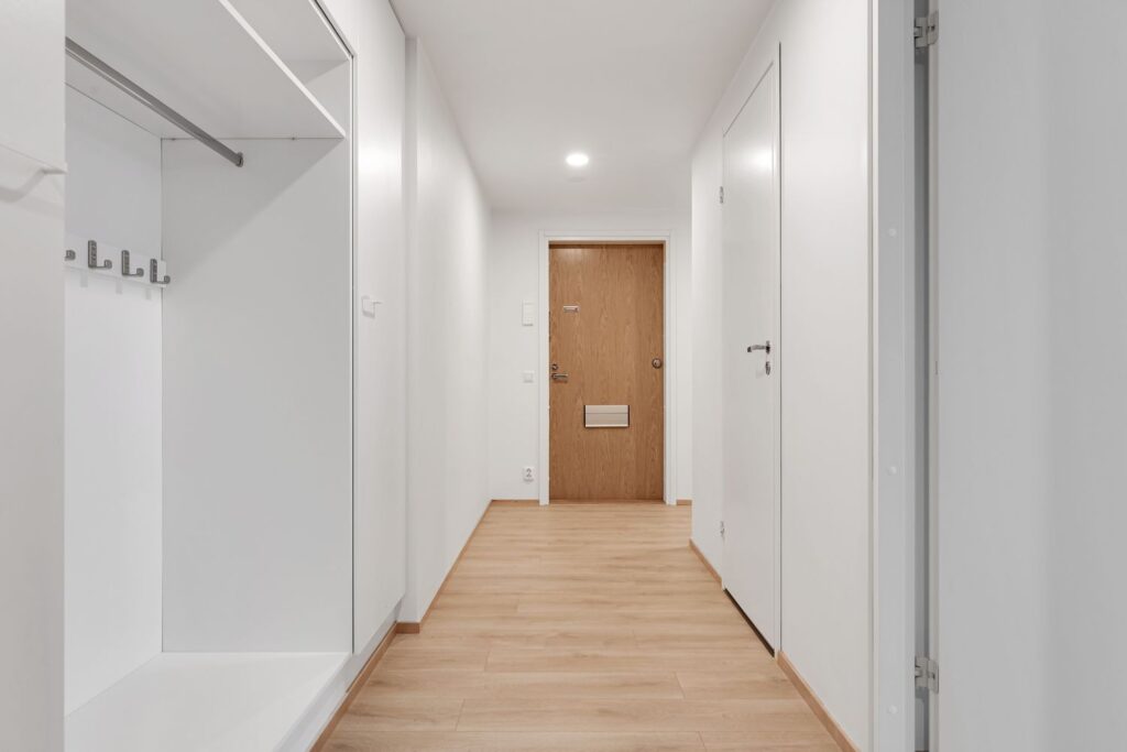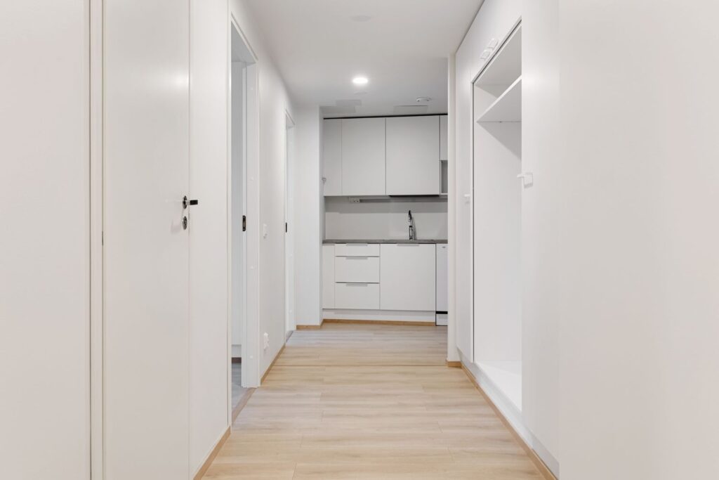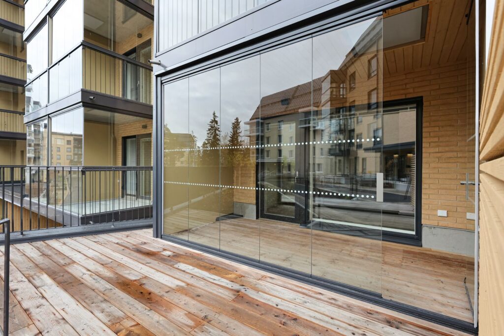 The Läpitalo apartment has a functional and spacious floor plan. The kitchen is a single space with the living room. The bedrooms are spacious and there is plenty of cupboard space in their connection. The living room has access to a glazed terrace, which serves as an additional room from early spring to late autumn. A separate toilet makes everyday life easier. The kitchen is equipped with a dishwasher and the separate toilet has space for a washing machine and a washing tower.