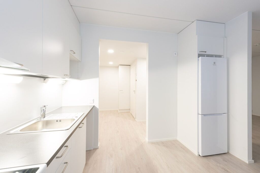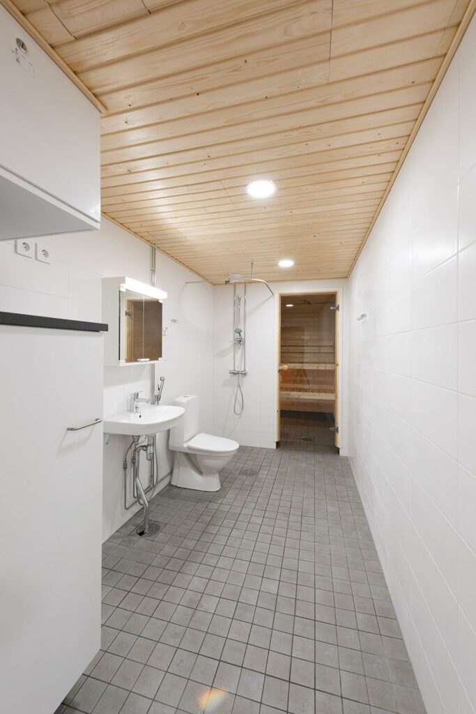 The building also has versatile common areas: apartment-specific storage rooms, outdoor equipment and stroller storage rooms, a club room, sauna, laundry and drying room. There is a parking garage in connection with the buildings. There are a total of 26 parking spaces for the residents of the property, of which 24 are garage spaces and the remaining 2 are yard spaces.