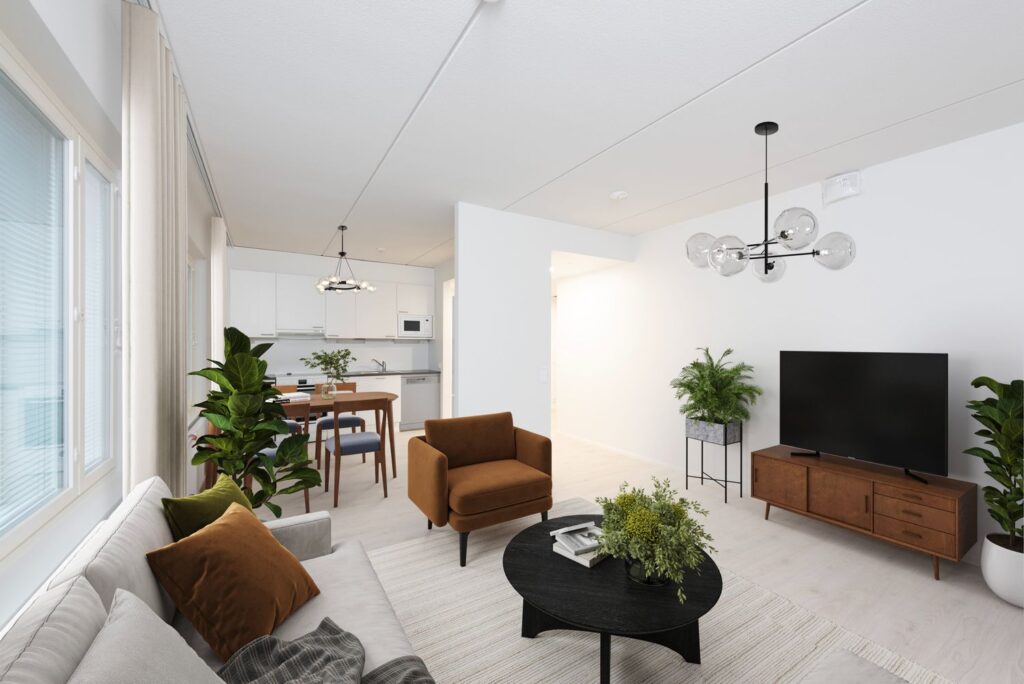 A right-of-occupancy apartment that offers a functional floor plan and comfort for everyday life. The spacious living room and kitchen together create the heart of the home – a cozy space where it is nice to cook, socialize and relax. The spacious bedroom offers a peaceful resting place and has direct access to your own balcony, where you can enjoy the fresh air. The comfort of living is enhanced by your own sauna, where you can relax at the end of the day. This home is designed for a smooth and comfortable everyday life.