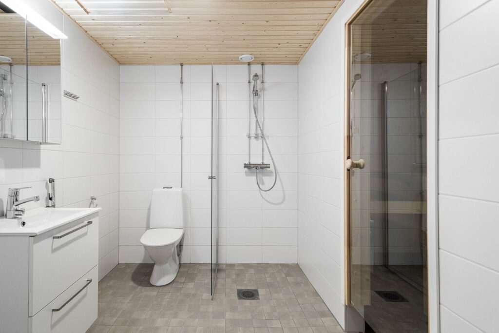 A spacious apartment on the fifth floor with a practical floor plan for a larger family. The living room and kitchen form a common living area, three bedrooms, two of which have access to a glazed balcony. The windows open to the east and west. A private sauna, two toilets and a large walk-in closet provide comfort and storage space. The kitchen has a ceramic hob, fridge freezer, dishwasher and a microwave.