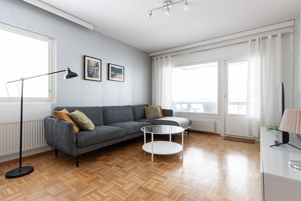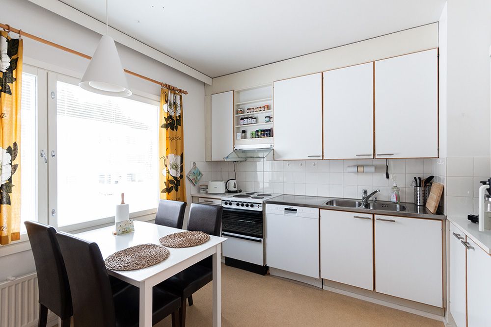 This spacious and functional home offers plenty of cupboard space and a pleasant setting for everyday life. A separate kitchen makes cooking easy, and a private sauna invites you to relax when it suits you best. The kitchen also has a dishwasher. Living comfort is enhanced by a large, south-facing glazed balcony, which brings light into the apartment and offers a cozy additional space well into autumn.