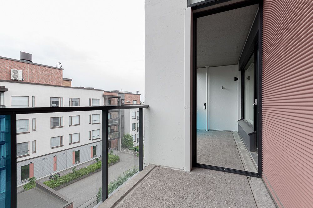 The apartment has light surfaces that increase the feeling of space. The open kitchen, which connects to the living room, has plenty of space for two cooks. There is plenty of storage space in the bedroom. The glazed balcony is divided into two parts by a partial partition wall, which allows for versatile use of the balcony: one side can serve as a relaxation area, and the other as a storage space.