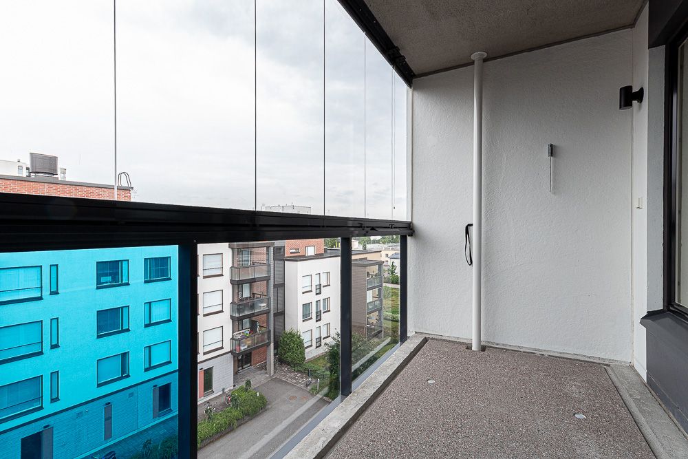 The apartment has light surfaces that increase the feeling of space. The open kitchen connected to the living room has plenty of space for several cooks. There is plenty of storage space in the bedroom. The glazed balcony is divided into two parts by a partial partition wall, which allows for versatile use of the balcony: one side can serve as a relaxation area, and the other as a storage space.