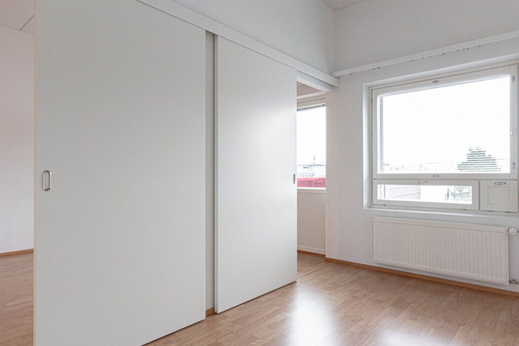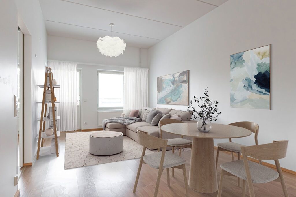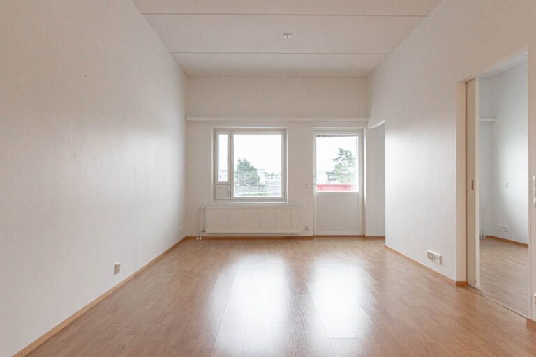 A spacious two-room apartment on the top floor is available in the Kiviharjunlenkki 2 senior housing complex. The kitchen is equipped with a standard stove, fridge-freezer combination and space for a dishwasher and microwave. The apartment has its own balcony. The bedroom has plenty of cupboard space and thanks to the sliding doors it can also accommodate a double bed. The bathroom is equipped with a shower, toilet facilities, a laundry cupboard and space for your own washing machine. You can book a sauna session in the building’s communal sauna if you wish. Note! The digital styling image is of a similar mirror-image apartment.