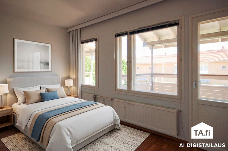 A bright terraced house in a green courtyard. In addition to the living room and toilet on the ground floor, there is a kitchen with plenty of space for a dining table. The bedrooms upstairs have plenty of cupboard space. In addition to the balcony, you can enjoy the terrace in your own yard.