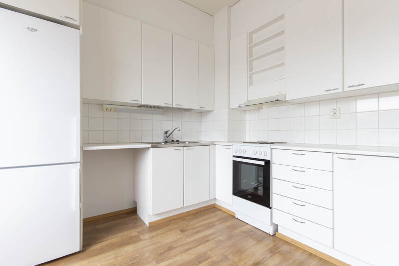 A spacious studio apartment on the second floor with a functional floor plan. The apartment has a bright, clean kitchen with plenty of cupboard space and space for a dining table. Access to the balcony is via the living room. The bathroom is in good condition and spacious, and can also accommodate a washing machine.