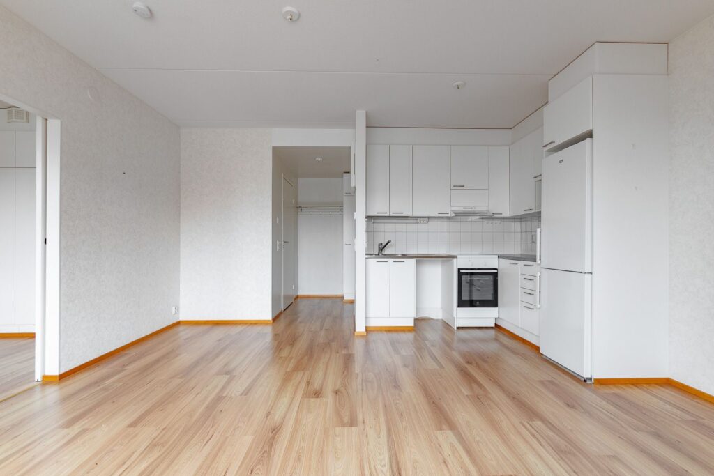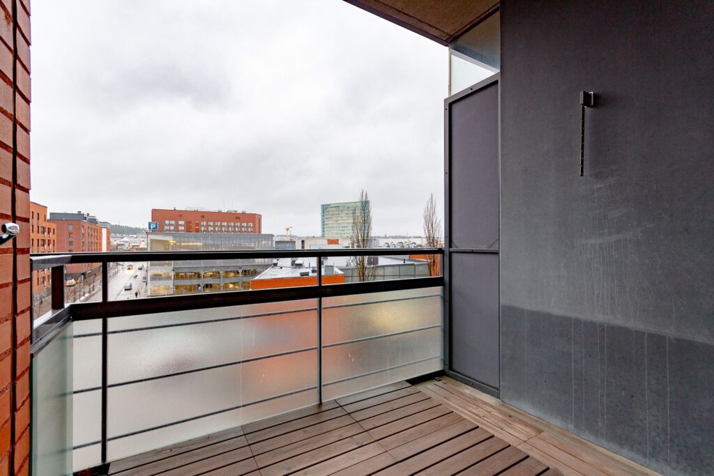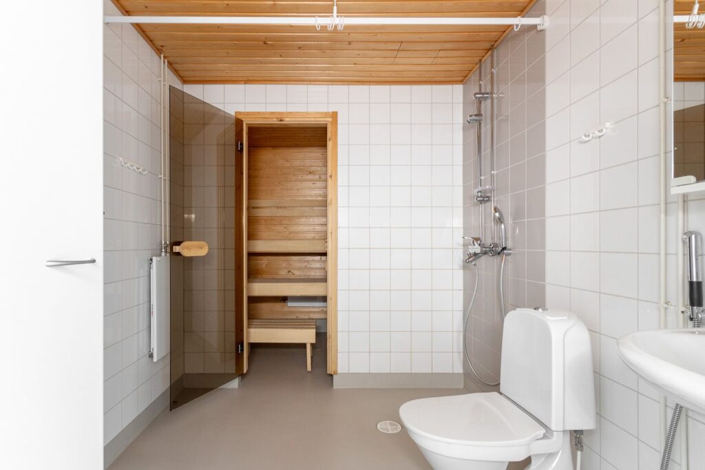 A two-room apartment with a sauna on the fifth floor of a building in Lutakko. The kitchen and living room are a single space, forming a spacious home. The apartment’s own sauna allows you to steam according to your own schedule, and you can cool off on the balcony facing the Paviljonki event center, which is accessible from the bedroom. The apartment has an induction stove.