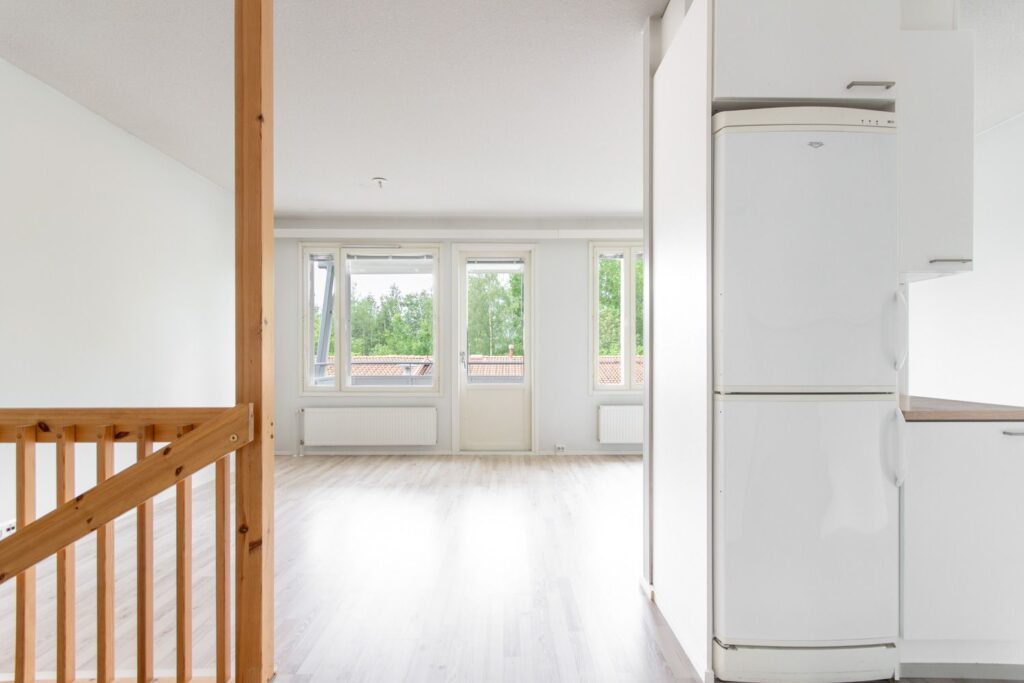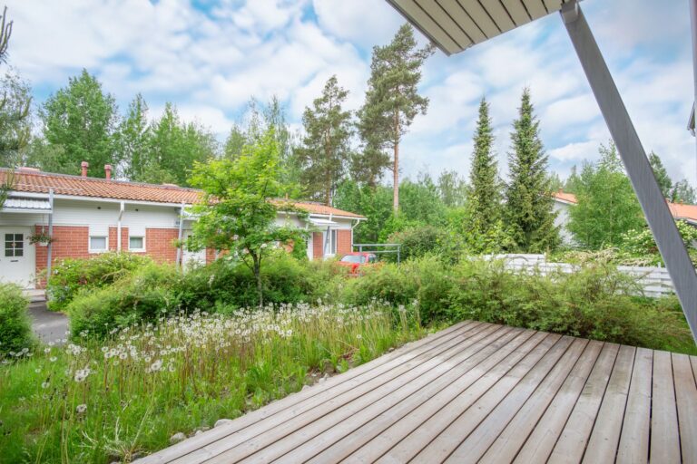 Äijäläntie 10 is a terraced house project in the quiet and child-friendly Väinölä area. The project consists of four residential buildings with a total of 23 apartments with saunas. Most of the apartments are on two levels. The project has property broadband, with a basic speed of 50Mbit/s included in the price. The apartments in the project have undergone “facelift” kitchen renovations in spring 2022, when, among other things, the kitchen cabinet doors and countertops were renewed.