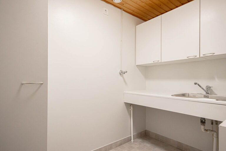 The advantage of the property is a cozy housing company and a location close to nature. The spatial solutions have also been thought out to be practical. There are three bedrooms upstairs, of which the master bedroom has access to a balcony. The sauna and washroom are also upstairs. Downstairs there is a recently renovated utility room and a separate toilet. There is a storage room under the stairs. There is a half wall between the kitchen and the living room, next to which you can conveniently place a dining table on the kitchen side. The stove is ceramic. The living room has access to its own, sheltered backyard.