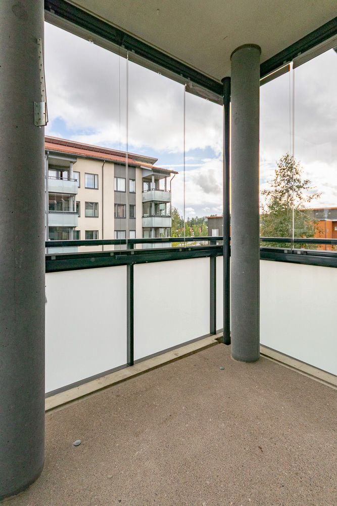 A clear-cut home on the second floor, where everyday life flows comfortably. The apartment has its own sauna for relaxation, and the glazed balcony overlooking the courtyard offers a peaceful place to enjoy morning coffee or evening sun. The windows and balcony open to the east-southeast, so light floods in naturally. In addition, a warm storage room for individual items on the same floor makes everyday life even more convenient.