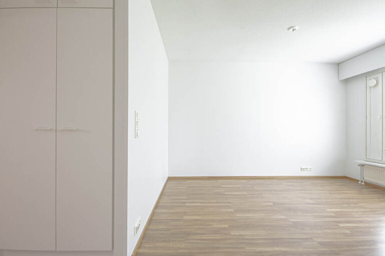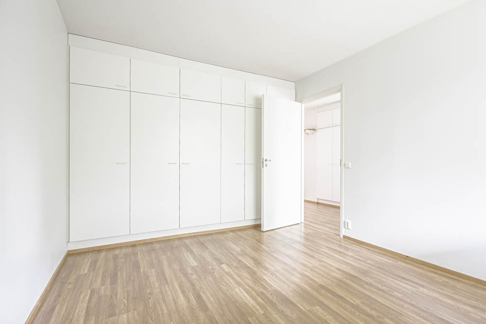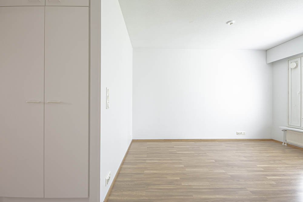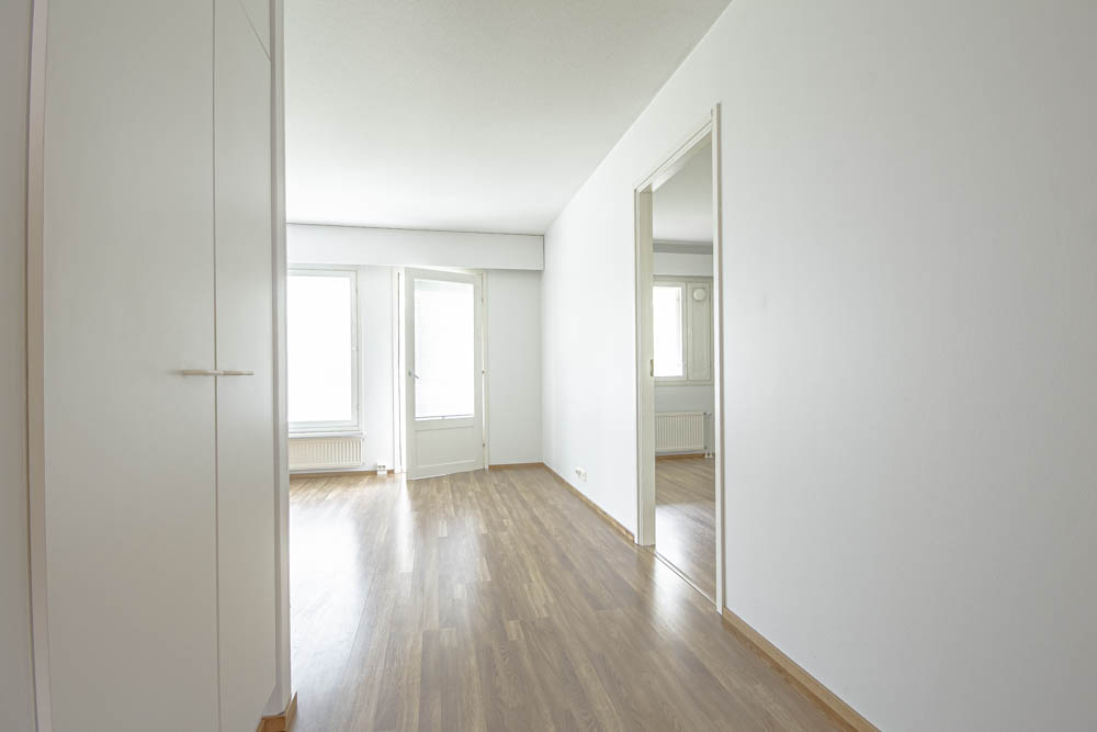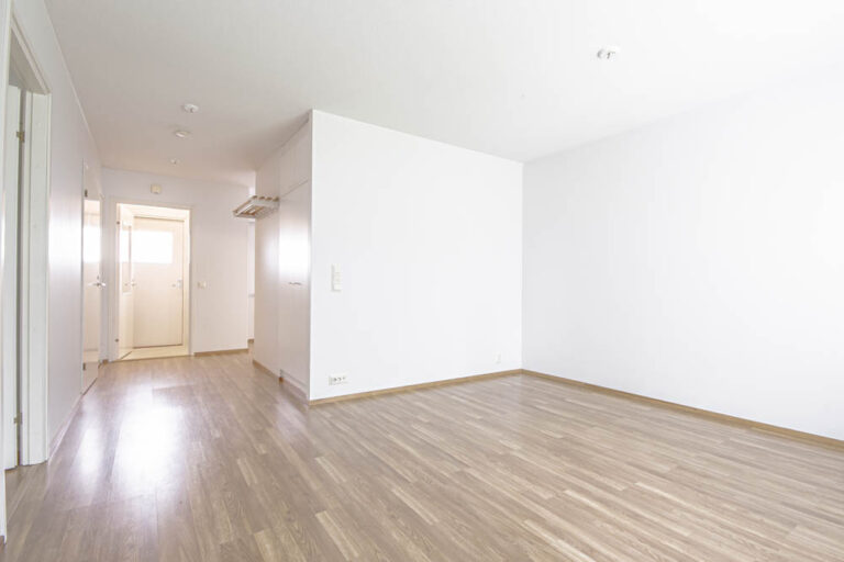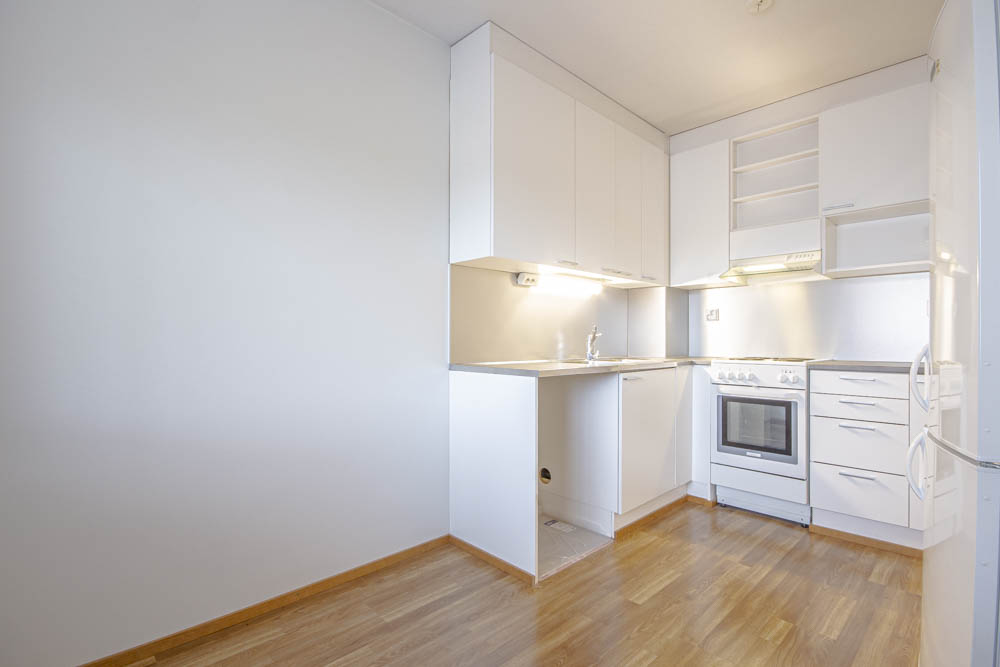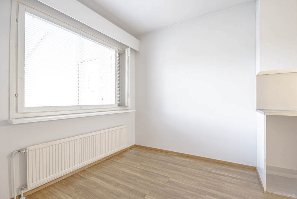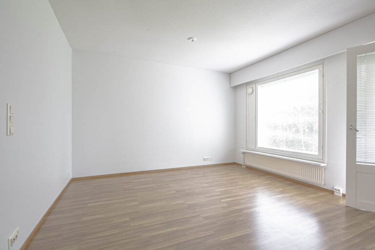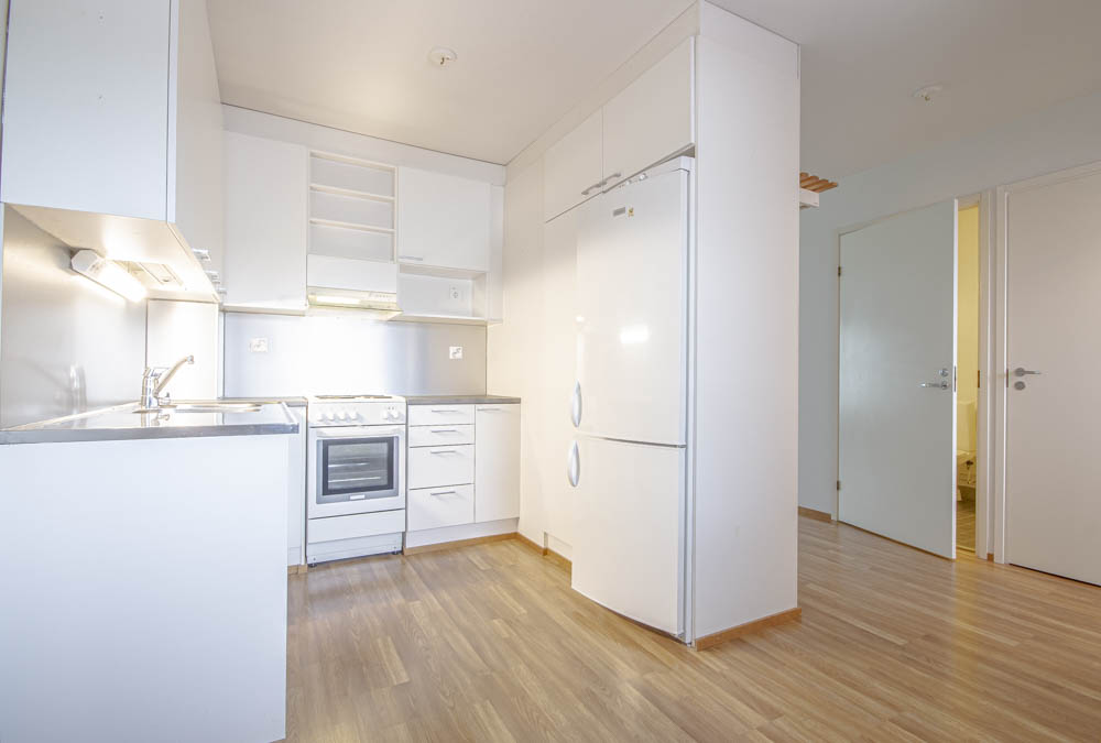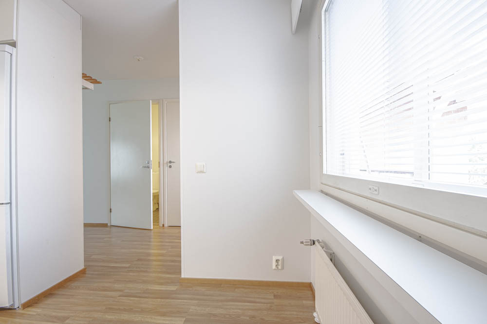 The kitchen has enough worktop and cabinets, and the whole works well for everyday cooking. The living room is the heart of the apartment – a bright and clear space that can comfortably accommodate, for example, a sofa group. From the living room there is access to the balcony, which serves as a nice additional space in the warmer seasons. The balcony opens to the west.