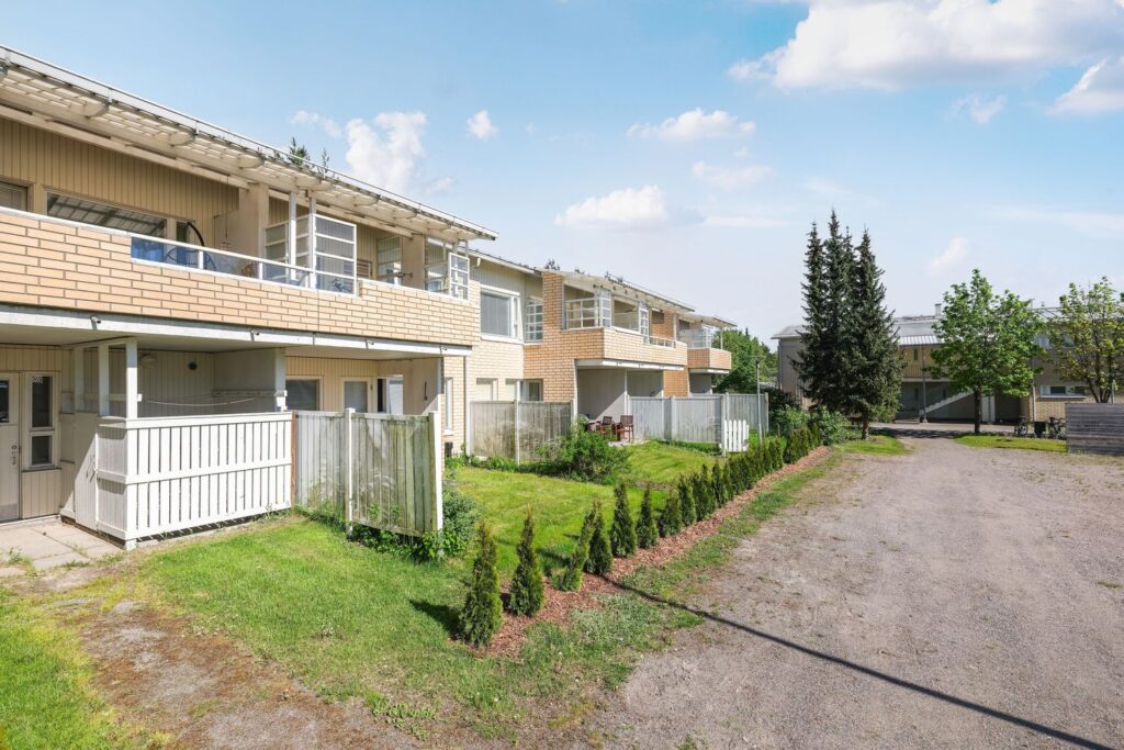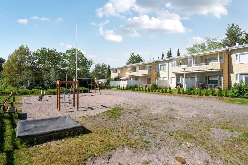 A cozy residential property in the Päiväkumpu area, with a total of 23 apartments. The property consists of three terraced houses. There is a playground with swings in the yard.
