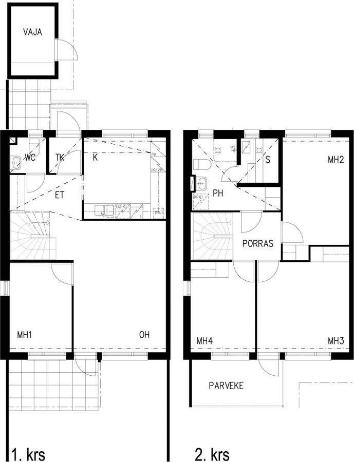 The apartment buildings have individual storage rooms for personal belongings and the terraced houses have their own outdoor equipment storage room in front of the entrance. The common areas have access to a laundry and drying room.