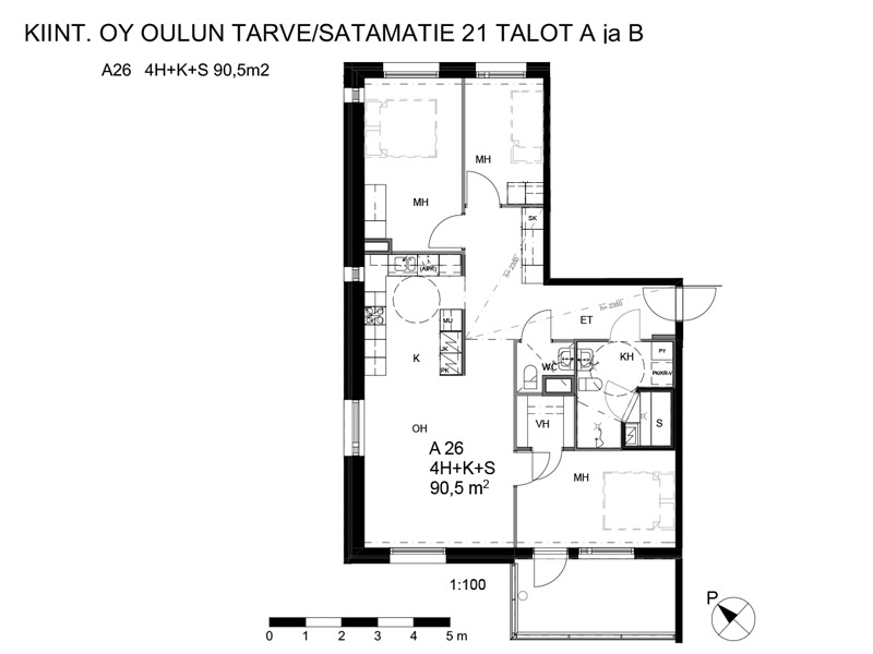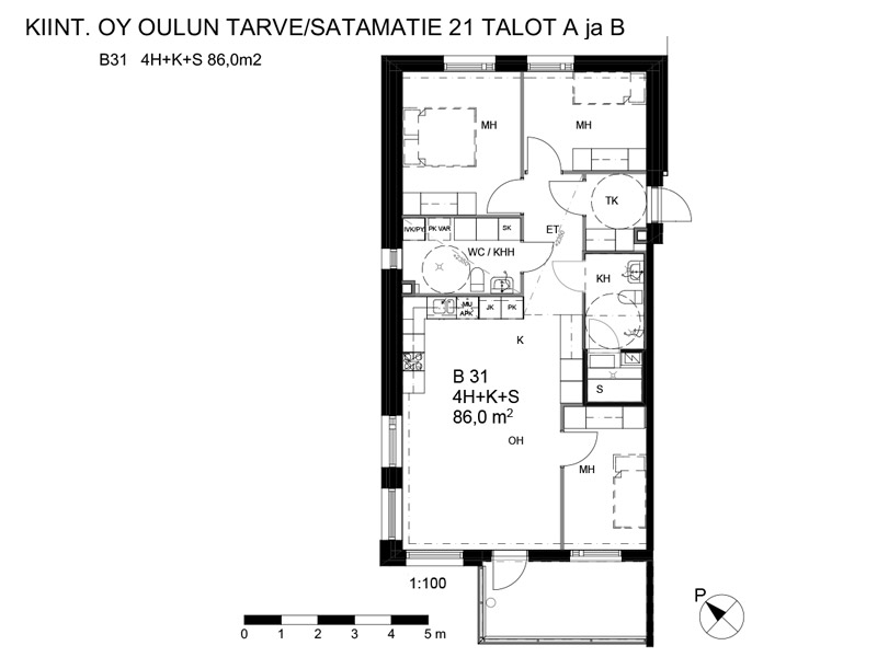 The Satamatie 21 project has an underground car park and glazed balconies in the apartments on the courtyard side. The small apartments in building A have a French balcony. All apartments in building B have a glazed balcony.