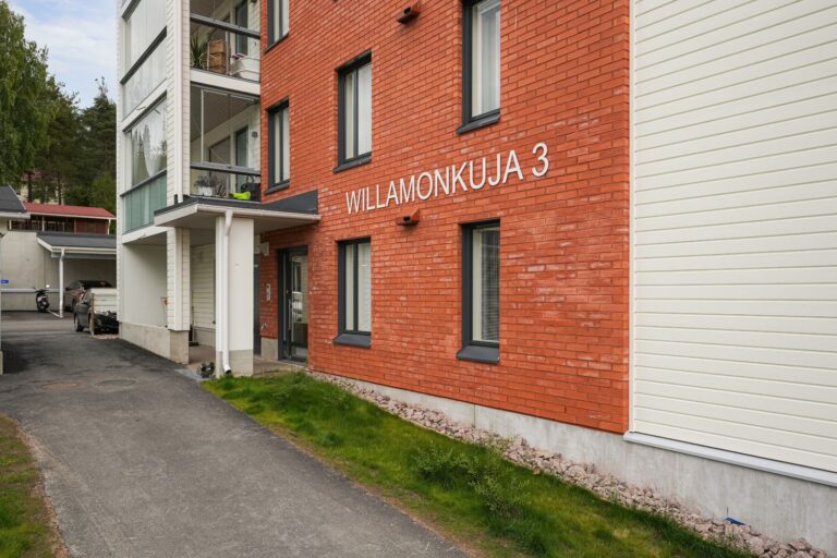 Willamonkuja 3 is an apartment building project located in the natural residential area of Etelärinne, with a total of 46 comfortable apartments. There are apartments for many living situations, from compact studios to larger family apartments. All apartments have their own sauna and a glazed balcony. The windows have venetian blinds. The flooring in the living rooms is laminate and the walls of the apartments are painted. The floors in the bathrooms, saunas and separate toilets are tiled.