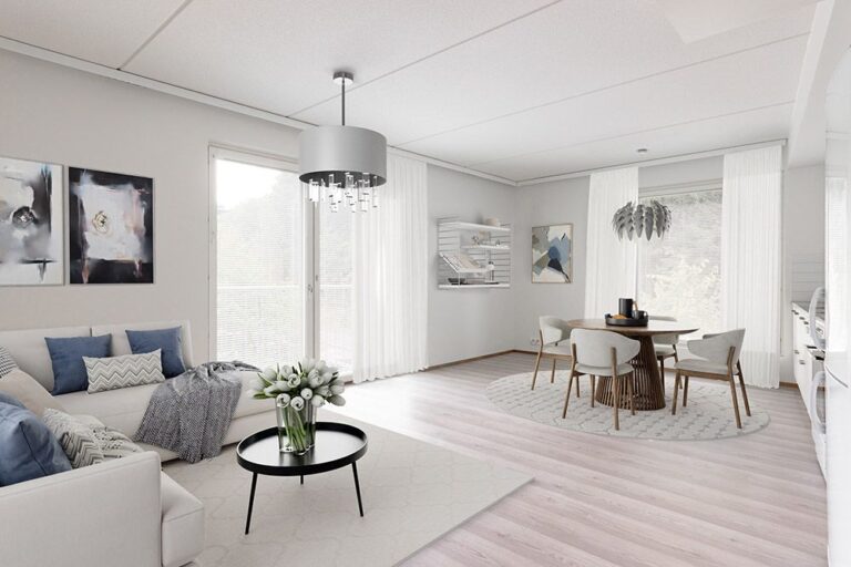 Vinkki: Monissa kohteen asunnoista on upea tilava olohuone-keittotila, johon voi perheen tai ystävien kesken kokoontua viettämään aikaa.