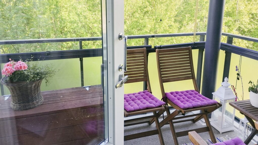 Hyödynnä kasvien asettelussa myös kaiteet ja väliaidat. Muista tässä kuitenkin turvallisuus ja ota naapurisi huomioon; ruukkuja ei tule koskaan asettaa aidan tai parvekekaiteen päälle tai ulkopuolelle. Suurilla ruukuilla ja korkeilla kasveilla voit luoda ulkotilaasi suojaisaa tunnelmaa. Köynnösseinämiä tai säleiköitä käyttämällä saat rajausta ja näkösuojaa ilman raskaita rakenteita.