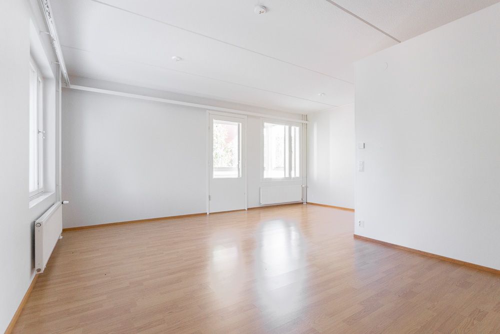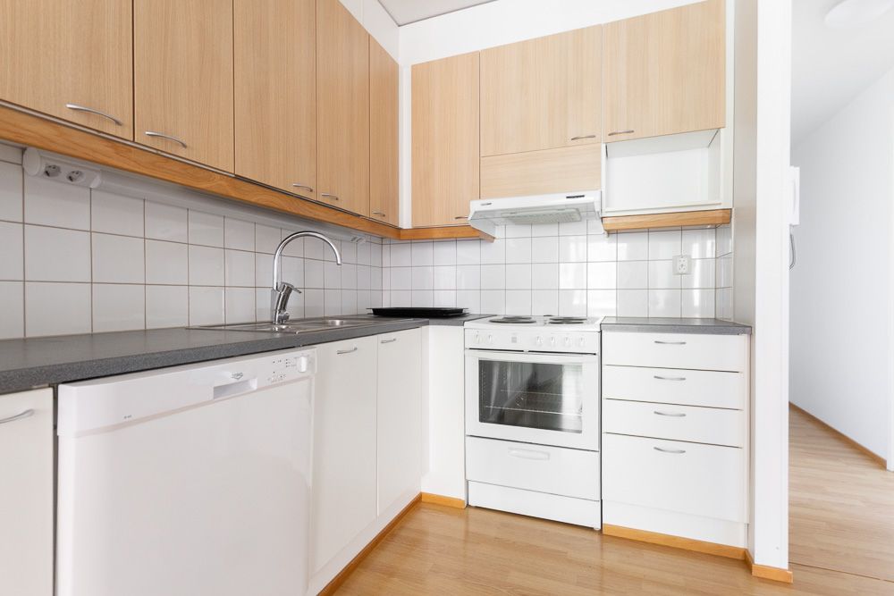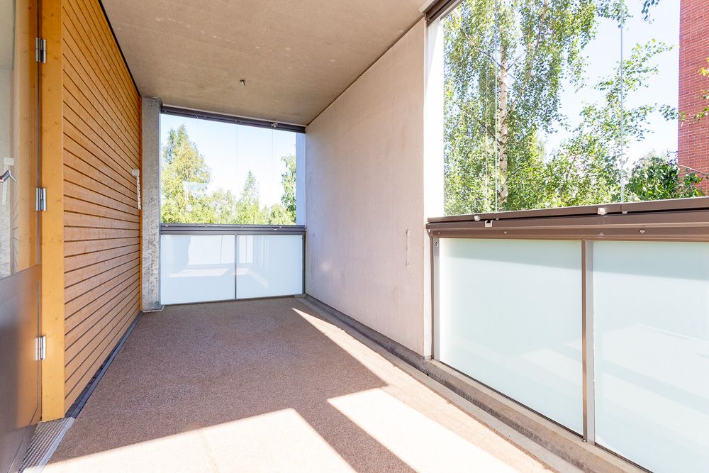 En fyrarumslägenhet på andra våningen finns tillgänglig på Revonkuja. Hemmets hjärta är köket, som delvis öppnar sig mot vardagsrummet. Matplatsen ligger framför fönstret och bredvid den finns utgång till en privat, stor, inglasad terrass. Köksmöblerna inkluderar även en diskmaskin, vilket är exceptionellt i denna fastighet. Det rymliga vardagsrummet kan möbleras på många sätt. De mindre sovrummen har skåp och det stora sovrummet har utöver skåp även en klädkammare. Toalettutrymmet är anslutet till ett grovkök, som inkluderar en städ- och tvättstuga samt plats för tvättmaskin och torktumlare. Tvättstugan har även toalettmöjligheter. Du kan njuta av ångan i din egen bastu om du vill. Obs! Bilderna är från en liknande lägenhet.