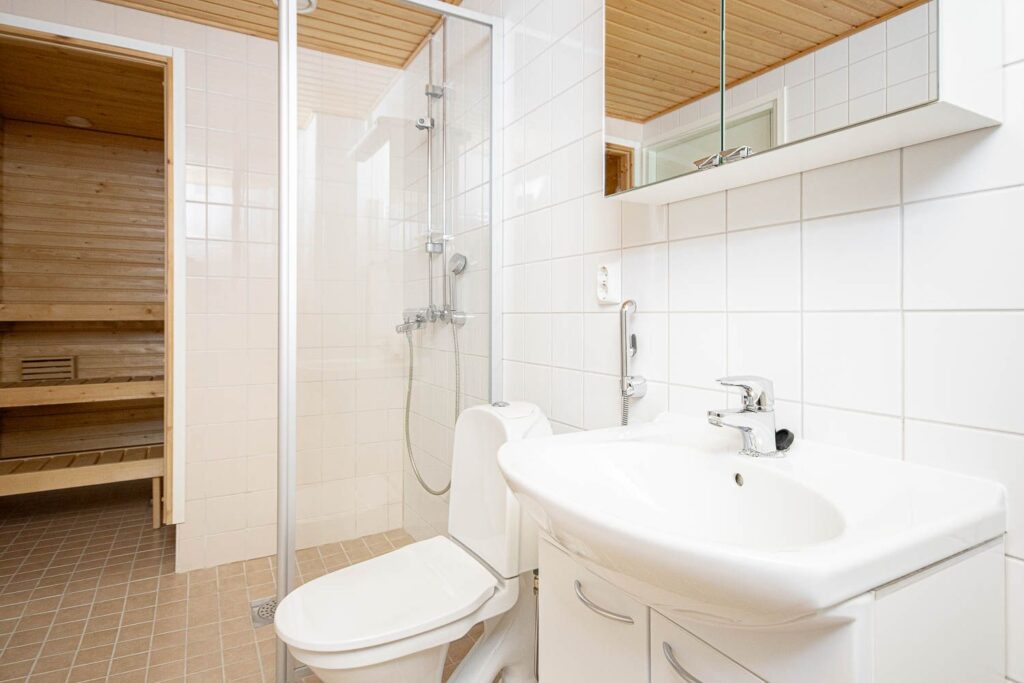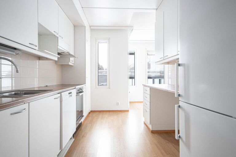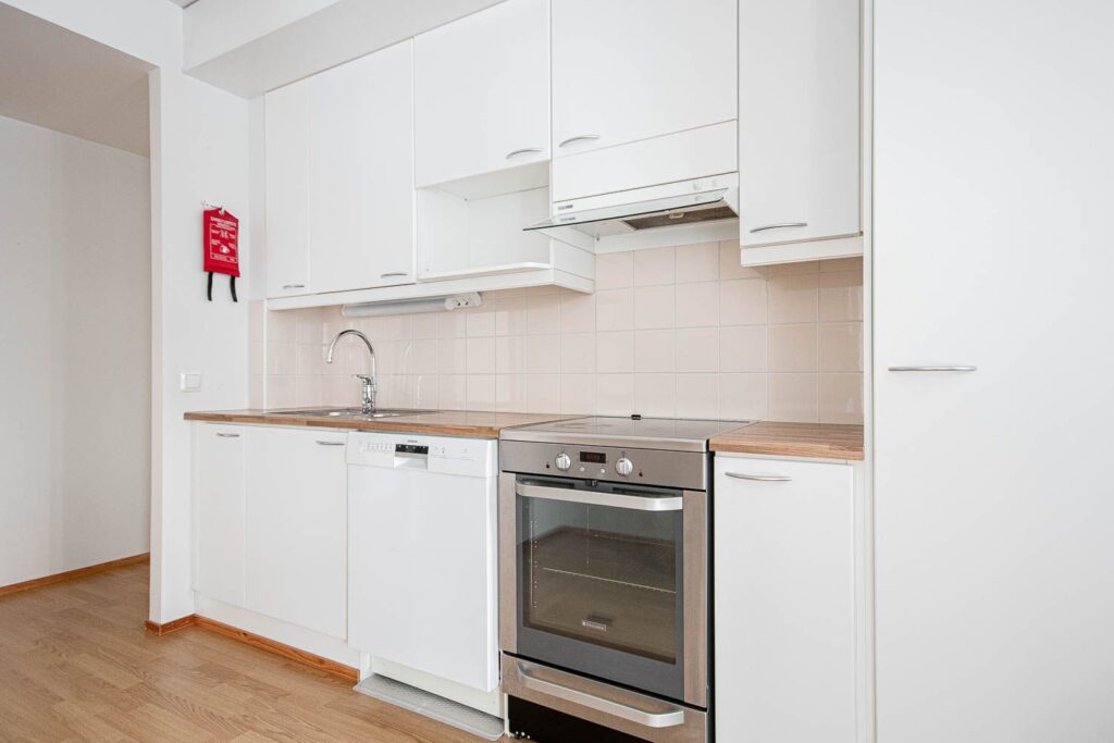 Lägenheten har två sovrum, ett rymligt och ljust vardagsrum och ett modernt pentry som naturligt ansluter till vardagsrummet. Tack vare den privata bastun garanteras vardagliga stunder av avkoppling. Stora fönster släpper in mycket naturligt ljus och gör bostadsutrymmena särskilt trevliga.