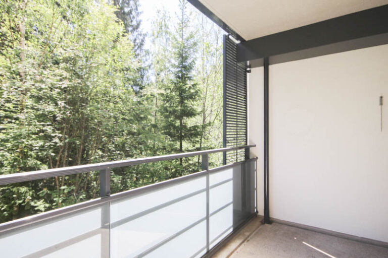 Boendets hjärta är det rymliga vardagsrummet, som öppnar upp mot utsikten över det gröna landskapet – fönstren och balkongen vetter mot naturens lugn och erbjuder en härlig atmosfär året runt. Balkongen kan glasas in, vilket gör den till ett mysigt extra utrymme även under svalare årstider.