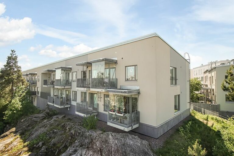 En bostadsfastighet belägen på en vacker, klippig, ljus sluttningstomt i Viikinmäki. Fastigheten har totalt 45 lägenheter. Lägenhetshuset A har 3–4 våningar, det lilla lägenhetshuset B har två våningar och radhuset C har 2–3 våningar. Varje lägenhet har ett eget förråd för personliga tillhörigheter på första våningen i lägenhetshuset. Dessutom har de boende tillgång till de gemensamma utrymmena som ligger på första och andra våningen i lägenhetshuset, vilka inkluderar ett klubbrum, tvättstuga, tre torkrum och förråd för barnvagnar och friluftsutrustning. Det finns en mysig sitt- och lekplats på gården. Det finns platser för bilar på gården och i det närliggande parkeringsgaraget. I Viikinmäkis naturliga miljö kan du njuta av utmärkta utomhusaktiviteter längs Vanda älv, till exempel ligger Pikkukoski badstrand bara en kort promenad bort. All nödvändig daglig service finns också i närheten. Busshållplatsen ligger en kort promenad bort.