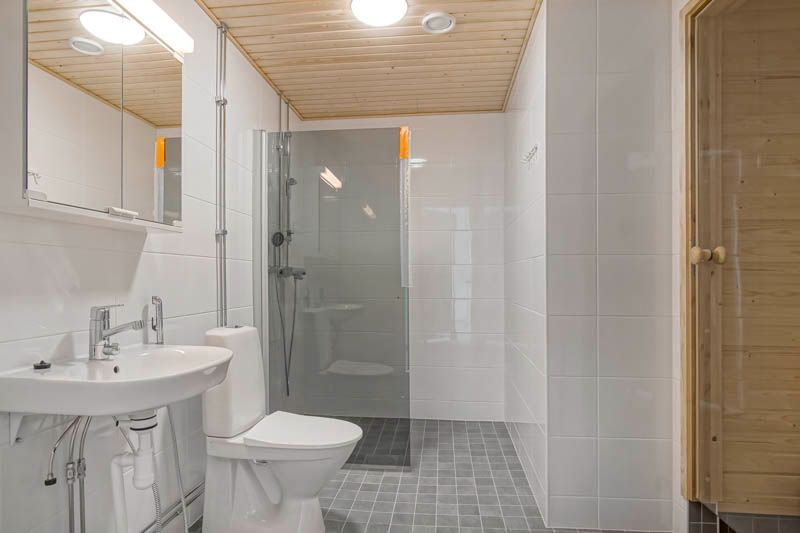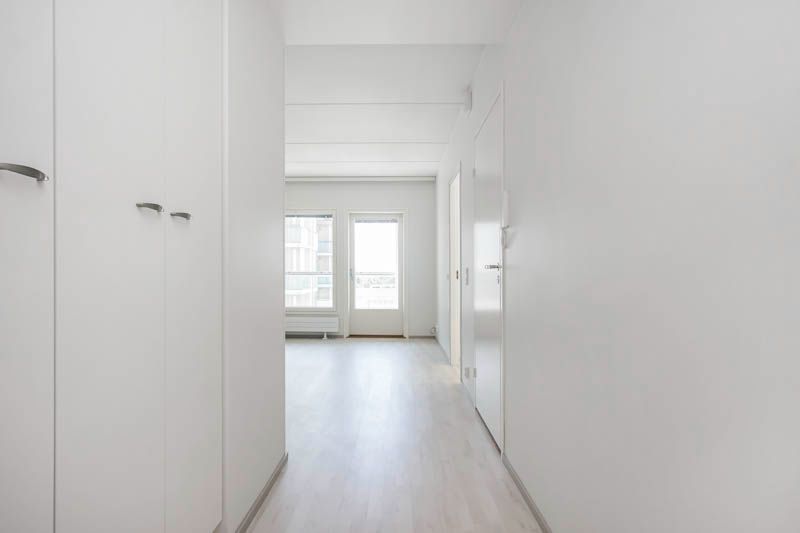 En funktionell tvårumslägenhet med en planlösning där pentryt öppnar sig mot vardagsrummet och bildar ett rymligt sällskapsutrymme. Pentryt är utrustat med en vanlig spis, ett högt kyl-frys och plats för diskmaskin (60 cm) och mikrovågsugn. Vardagsrummet har utgång till en privat balkong i västerläge. Hallen har en garderob, en grovkök och tillgång till tvättstugan. Tvättstugan har en tvättstuga, plats för tvättmaskin och torktumlare, dusch och toalett. En privat bastu kompletterar helheten. Det rymliga sovrummet har skåp. Interiörbilderna av lägenheten är från en liknande lägenhet.