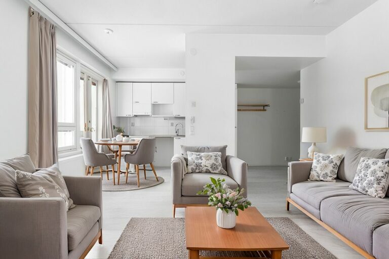 Heinäkuja 1 och 2 ligger i Nuutti, Palokka. Nuutti är ett lugnt bostadsområde på västra sidan av Palokka, cirka 1,5 kilometer från Palokankeskus mångsidiga service. Fastigheten består av fyra tvåvåningshus med bostadsrätt, med totalt 34 lägenheter med bastu. Varje hus har hiss för ökad boendekomfort. De mysiga ljusa lägenheterna har laminatgolv, kaklade badrum, balkonginglasning, persienner och en keramikhäll i köket. Varje lägenhet har två förråd, ett inomhus och det andra i gårdsbyggnaden. Det finns gott om parkeringsplatser, totalt 52. Det finns till och med plats för familjens andra bil. Lägenheterna färdigställdes den 29 september 2017.