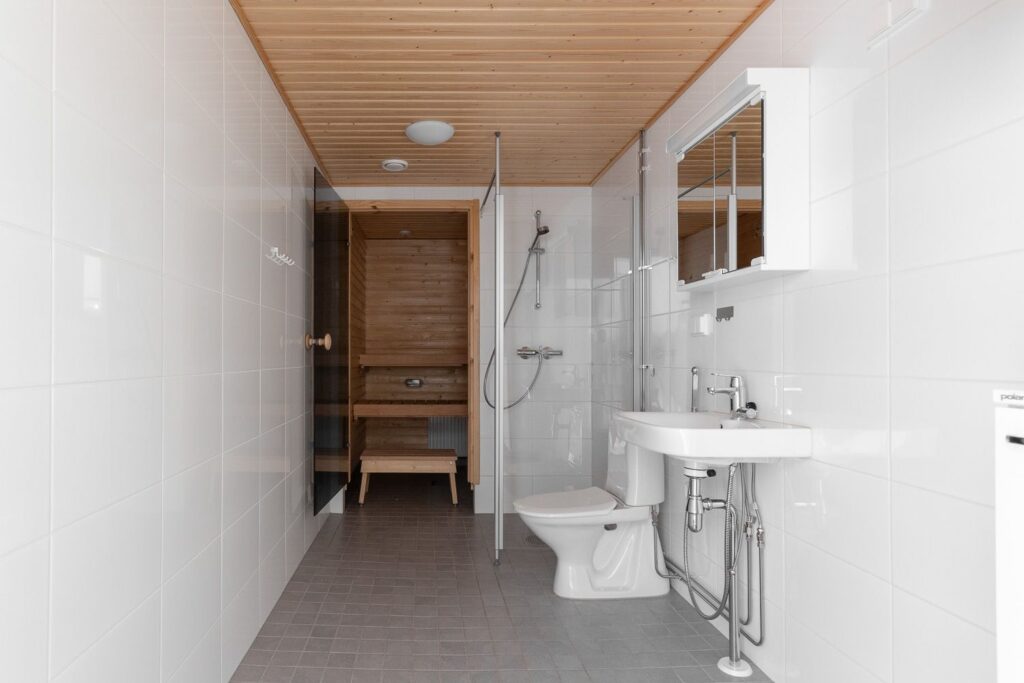 Det rymliga vardagsrummet och köket bildar en tydlig helhet med gott om plats för matplats. Sovrummet har skåp och en separat klädkammare, vilket ger gott om förvaringsutrymme. Lägenheten har en egen bastu, vilket bidrar till boendekomforten.