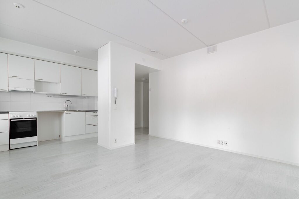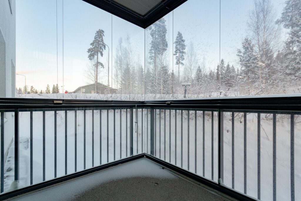 Köket och vardagsrummet bildar en enhetlig och bekväm helhet, där det är lätt att umgås både i vardagen och med vänner. Vardagsrummet öppnar sig mot en privat inglasad balkong, vilket ger extra utrymme och en lugn plats att koppla av på året runt.